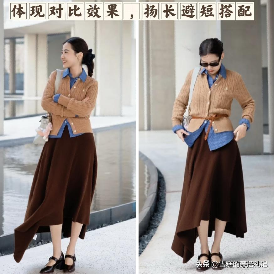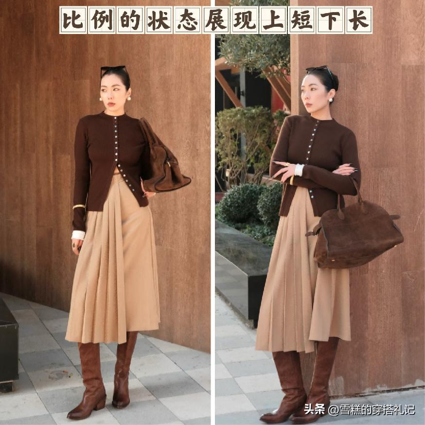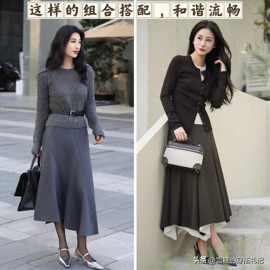 上了年紀之後,身材上如果會有一些不足的話,例如像小贅肉長得比較多,又或者是身材走樣的話,那麼建議大家針織衫這款單品在組合下半身系列的時候,最好能夠體現揚長避短的搭配,例如你的腿部比較粗壯,就可以運用修身的針織衫結和寬鬆的闊腿褲或者是百褶裙。
