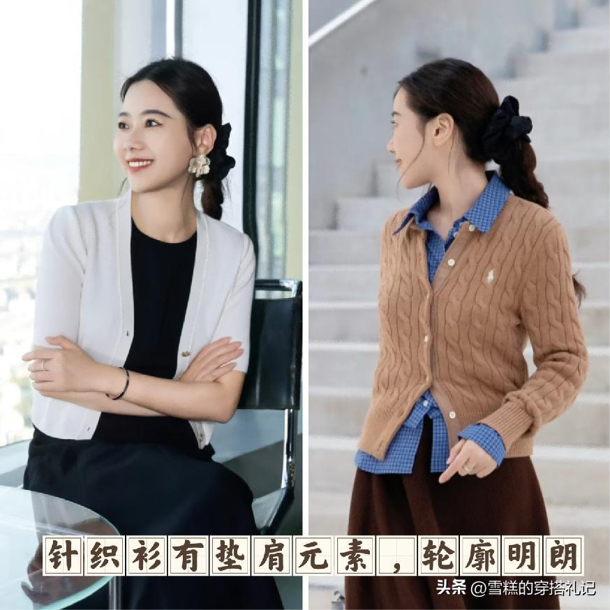 而且這一款單品如果有考慮一些細節方面的設計元素,它本身帶有墊肩的設計或者是開衫的搭配能夠保證領口位置的優勢襯托對於我們臉型輪廓走向又或者是脖頸曲線的美感體現都非常的積極優勢。這樣款式的針織衫在進行搭配的時候,其實就可以略微的修身,偏向於直筒設計感明顯一些了,這樣的穿搭更是百搭不挑人。