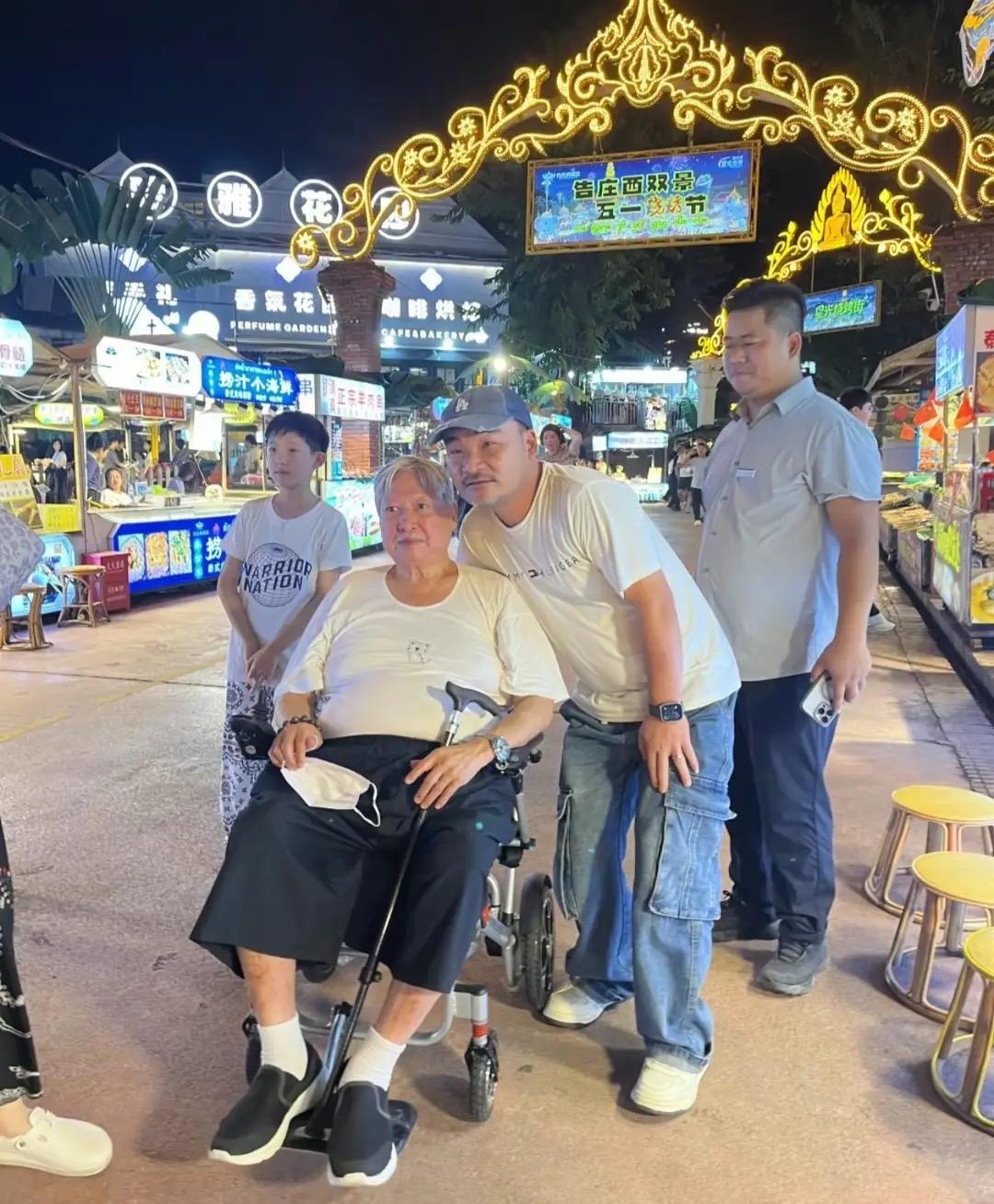 76歲洪金寶和家人逛夜市,坐輪椅穿布鞋身材肥碩,頭髮花白像奶奶