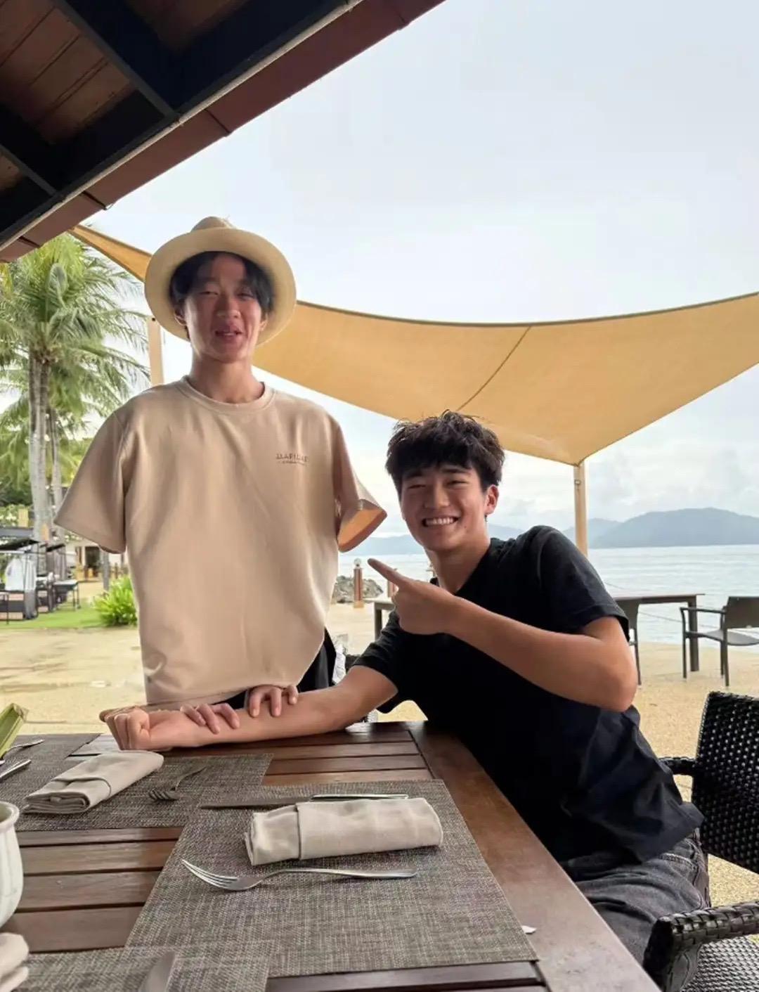 兩個大男孩就約着在馬來西亞玩耍了,當初的小不點都長大了,尤其是Joe高高帥帥的,打扮的簡單時尚。
