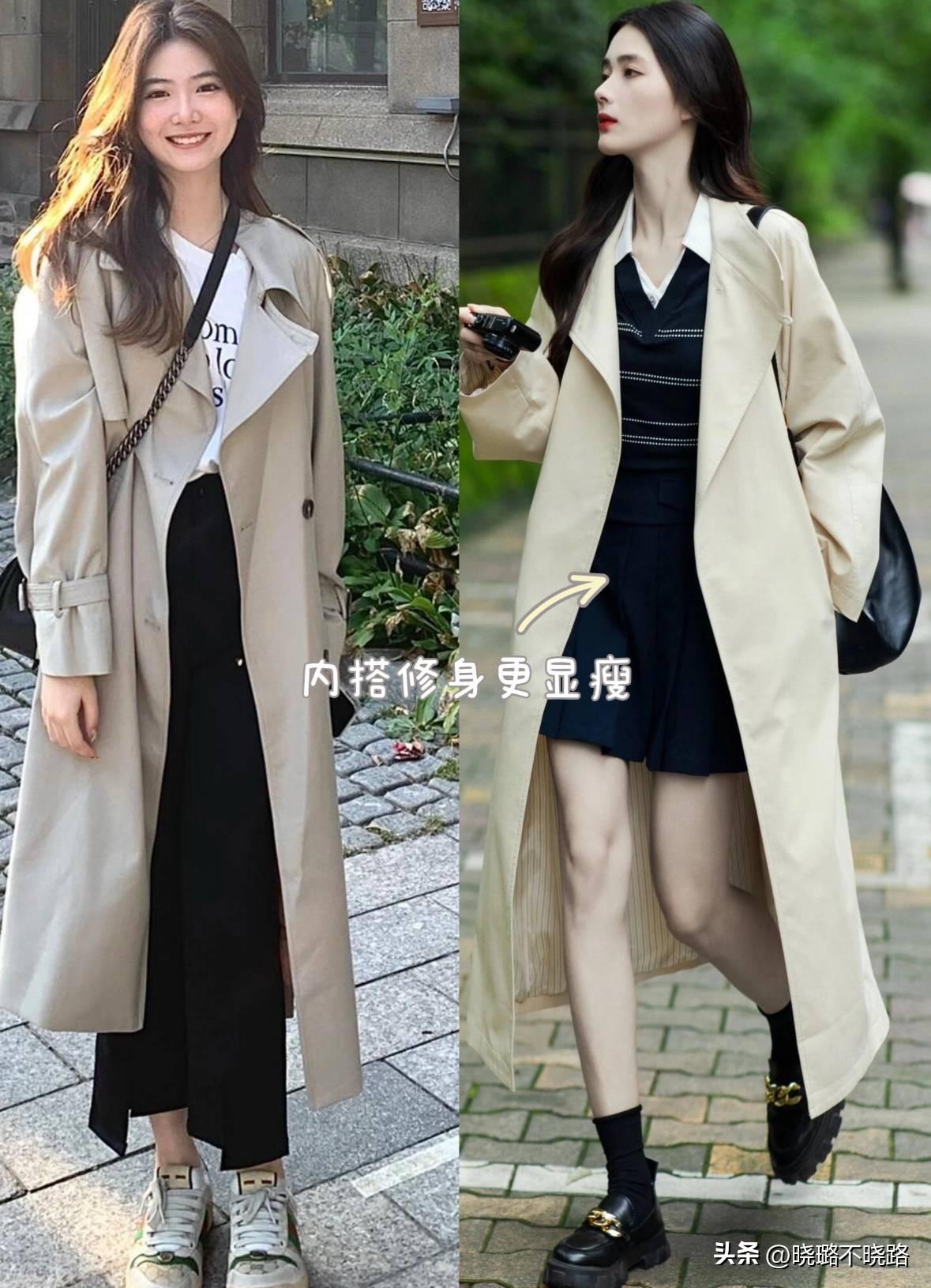 早秋穿風衣,千萬不要裹得像個“糉子”,同時,還要製造出“內收感”,簡而言之,就是內搭可以稍微修身一點,貼合度高才不會穿出臃腫的現象。
