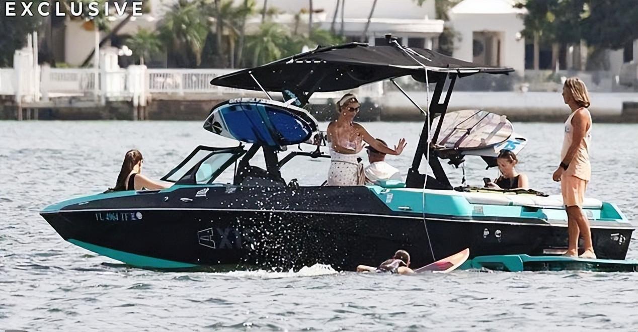 她身着一襲粉色印花抹胸連衣裙,裙身點綴的細碎花朵本應呼應沙灘的浪漫,高開叉設計順着腿部線條延伸,每一步都能感受到海風的輕撫,完全是爲度假量身打造的款式。鼻樑上的時髦墨鏡遮住了大半張臉,卻擋不住嘴角下垂的弧度,往日標誌性的笑容消失得無影無蹤,只剩下藏不住的落寞。身旁的女兒阿拉貝拉浮在衝浪板上向她揮手,她抬手回應時,連指尖都透着敷衍。
