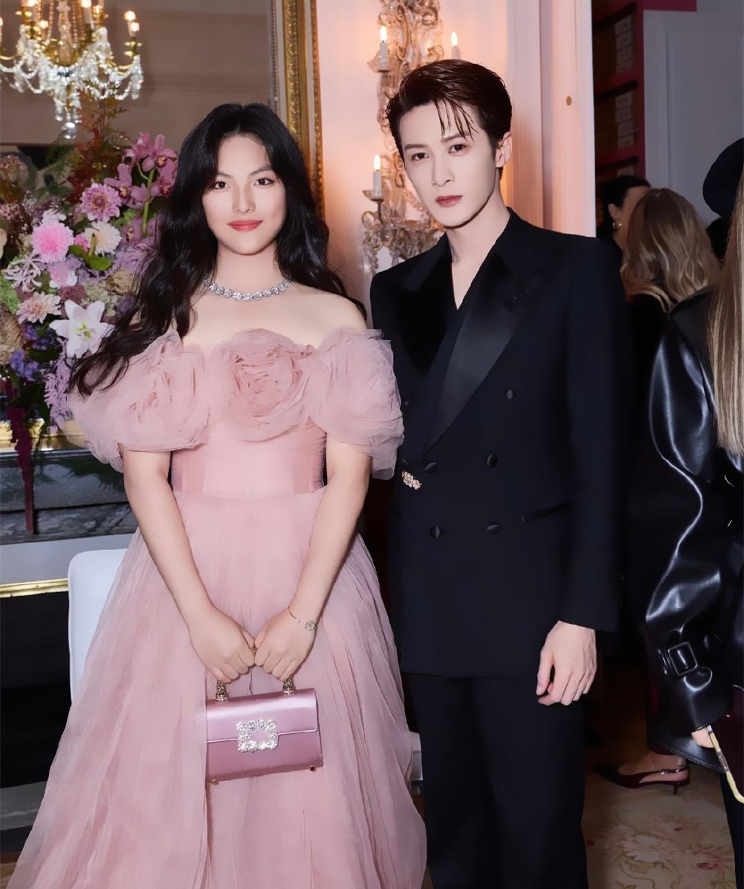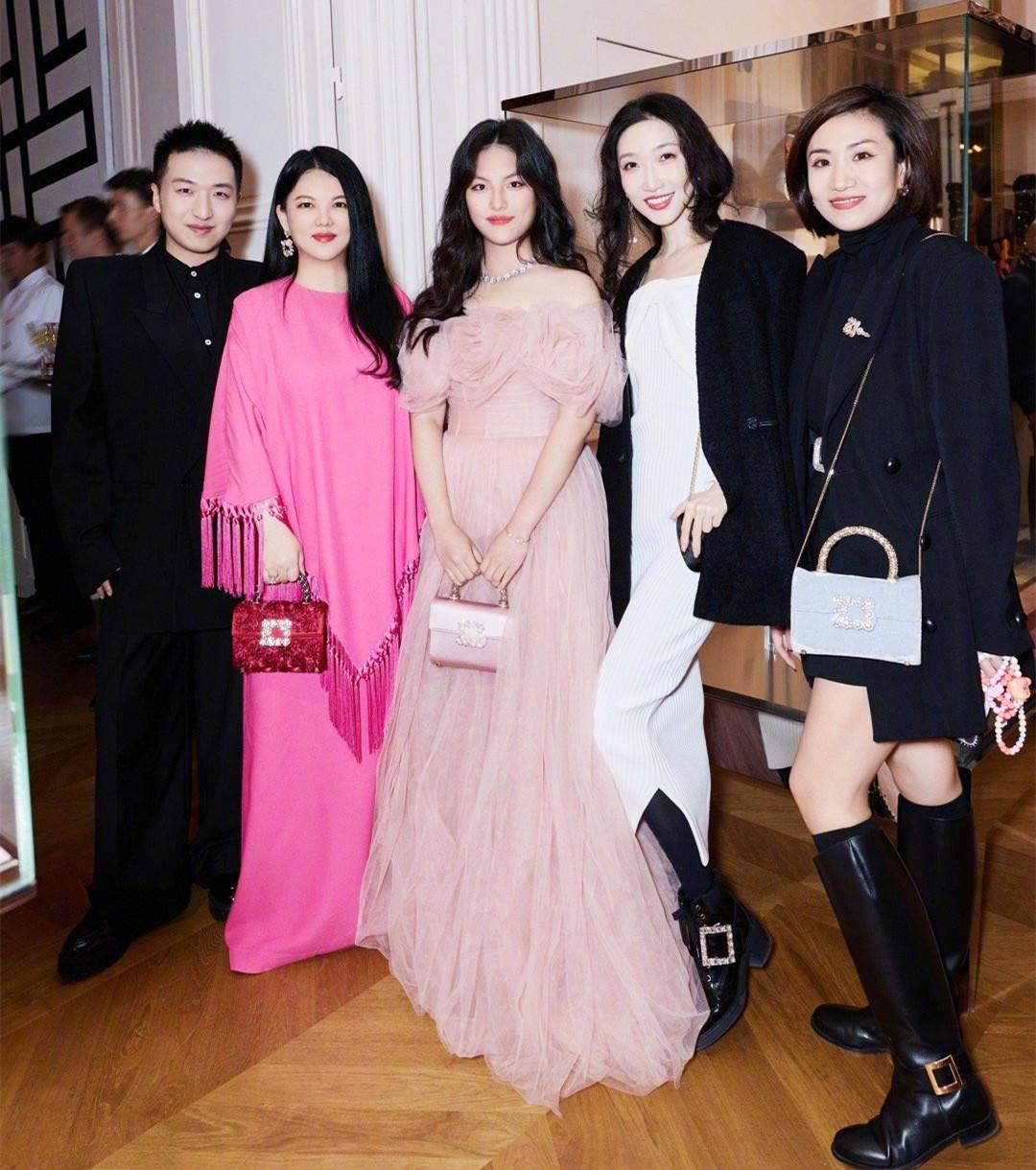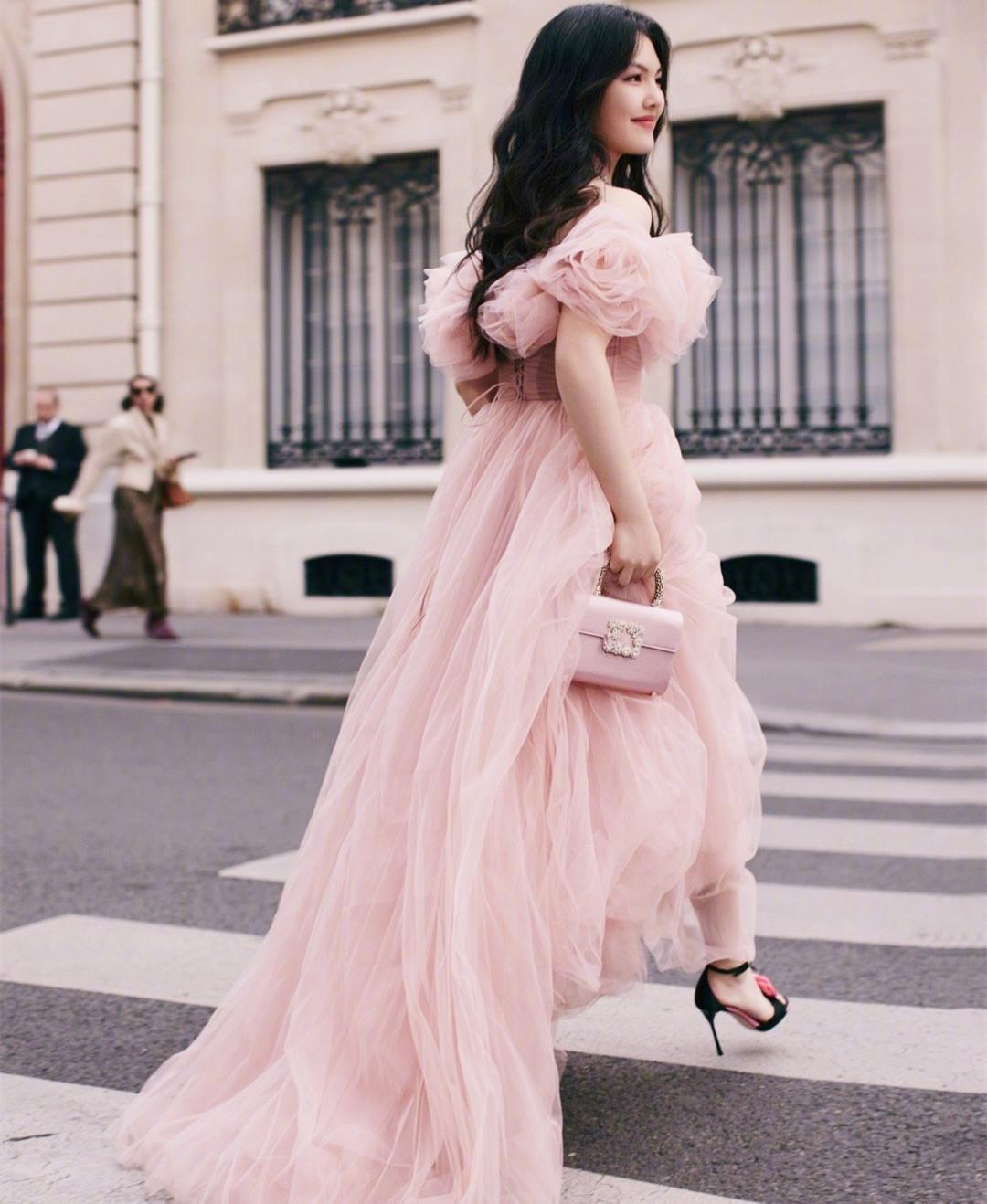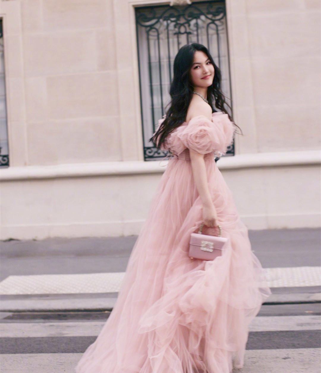 在巴黎時裝週的晚宴上,她選擇的粉色紗裙與現場的香檳塔、水晶燈形成色彩呼應,而李湘的玫紅色長裙則作爲對比,更凸顯她的嬌嫩。這種色彩搭配既避免了沉悶,又不會過於張揚。