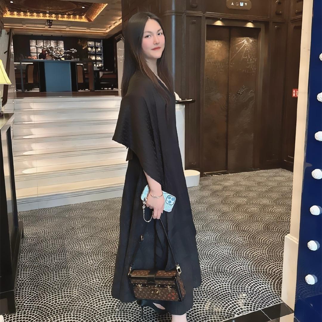 在少女感的基礎上,王詩齡的穿搭總能通過大牌元素彰顯獨特品味。她對 Roger Vivier 等奢侈品牌的駕馭尤爲亮眼:某次亮相時選擇的黑色緞面禮服,看似簡約卻暗藏玄機 —— 腰間的金屬搭扣是品牌經典標識,裙襬的斜裁設計勾勒出少女身形,搭配同品牌水鑽手包,將 “低調奢華” 詮釋得恰到好處。