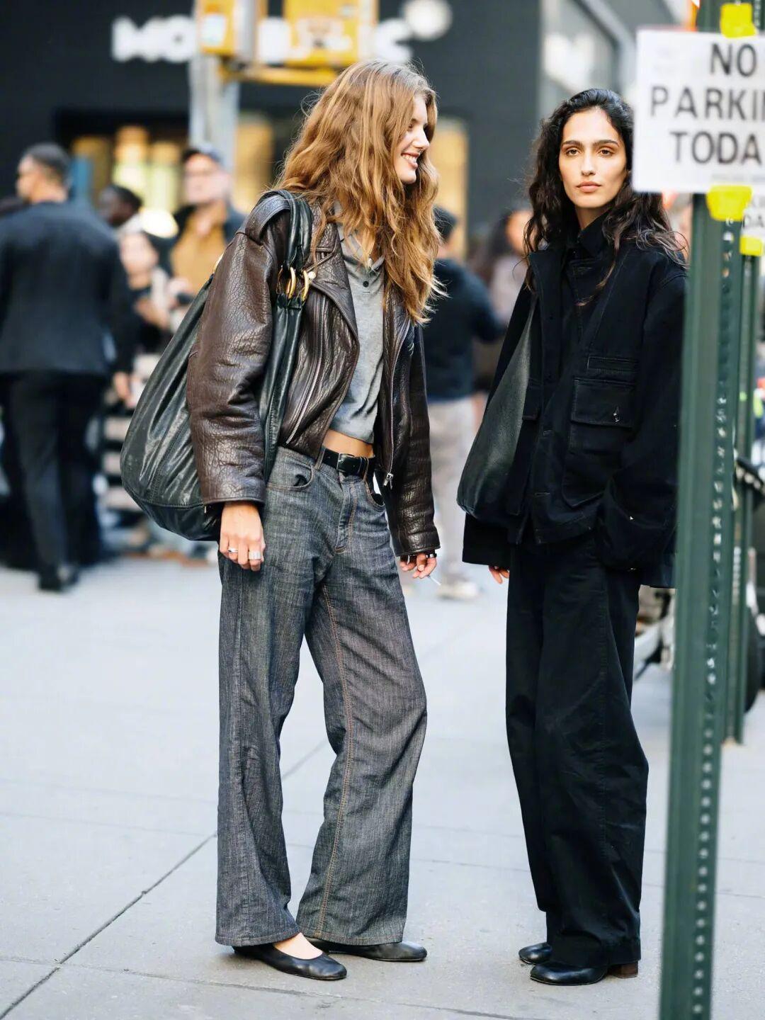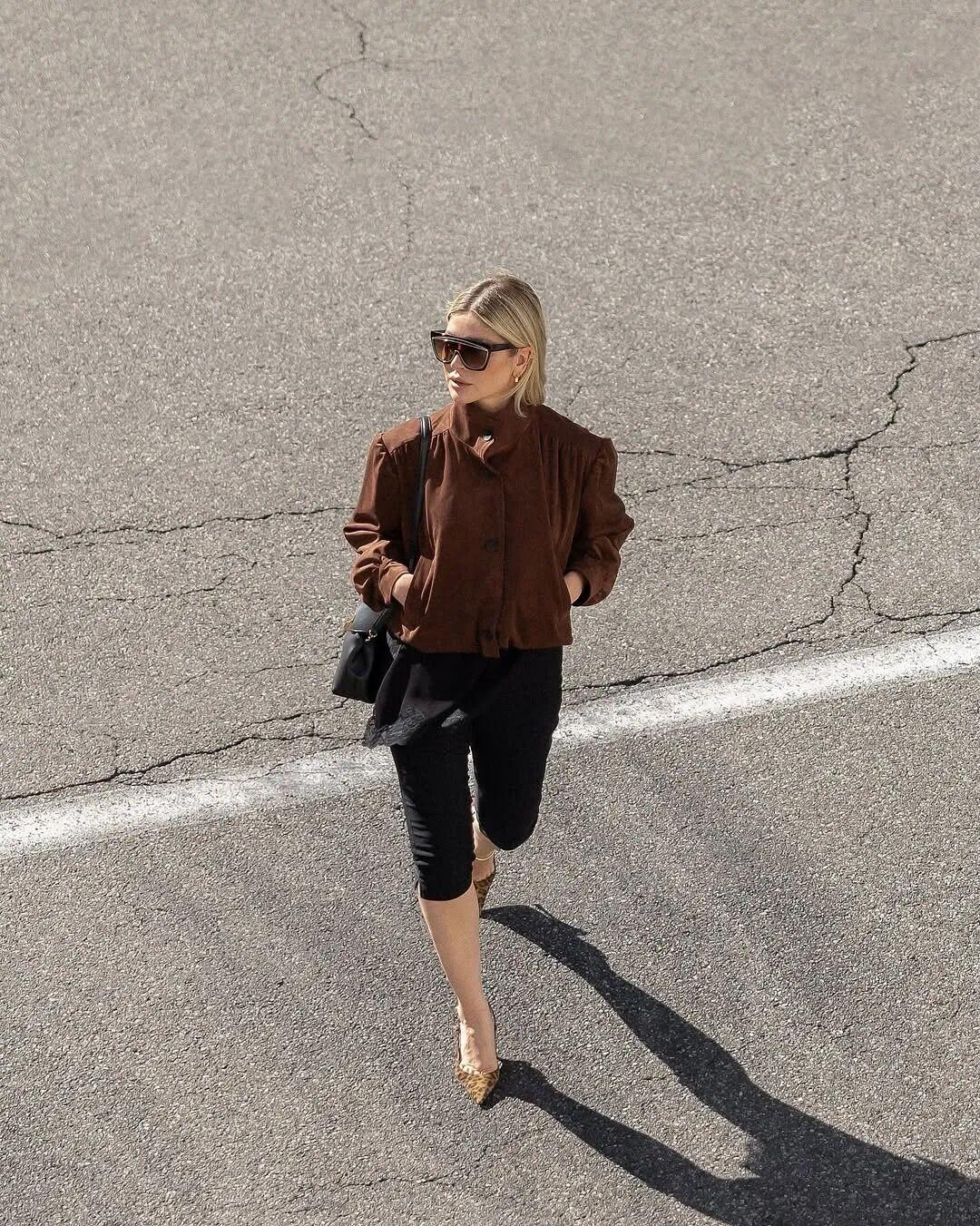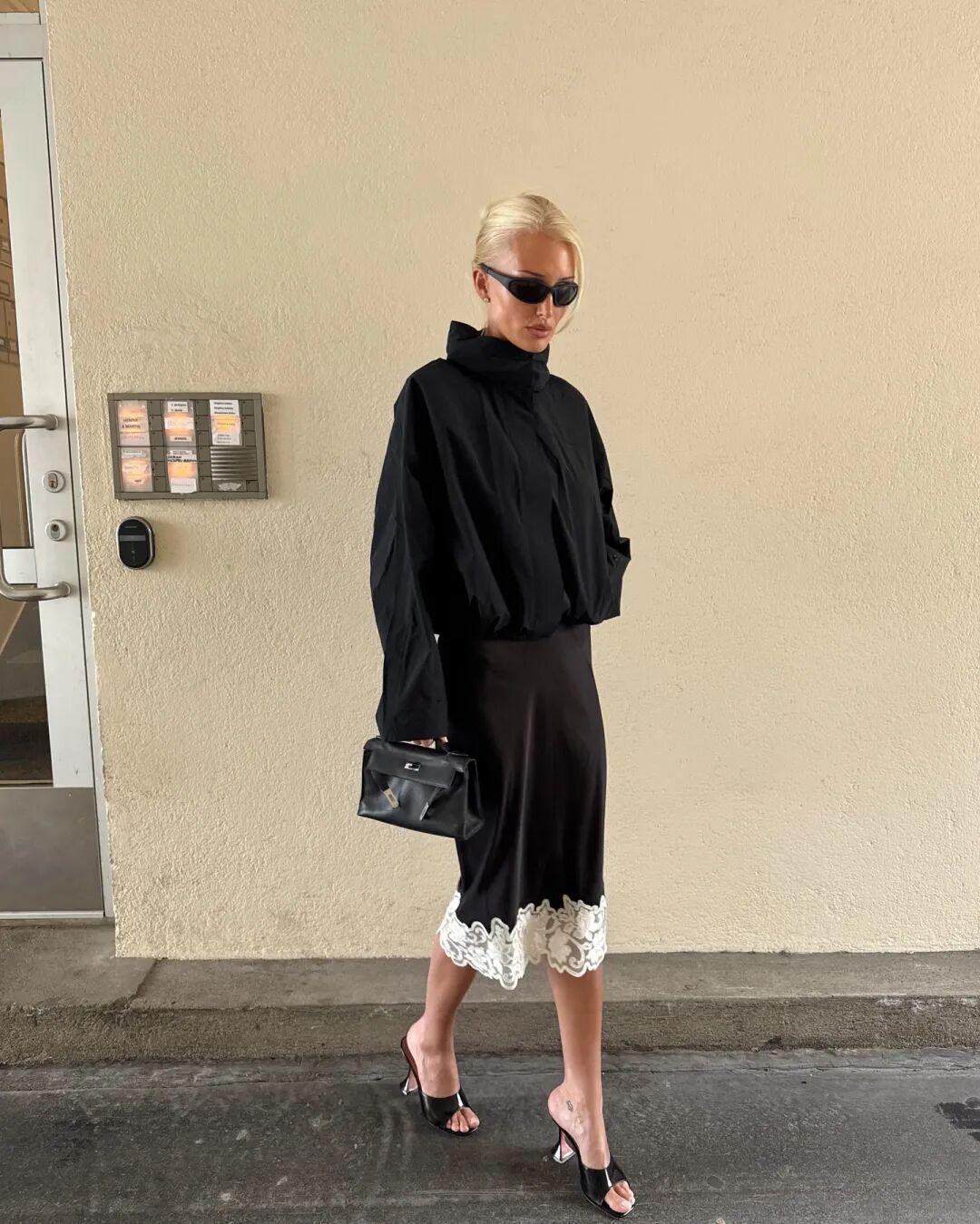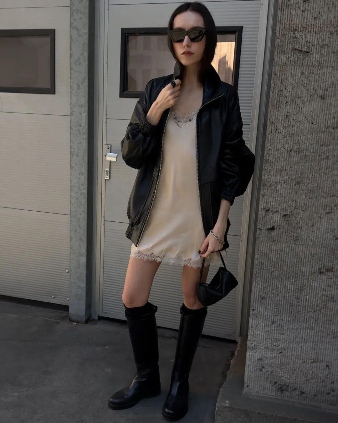 歐美博主則喜歡換上黑色細帶小高跟,夾克一脫就可以過夜生活了哈哈。▼