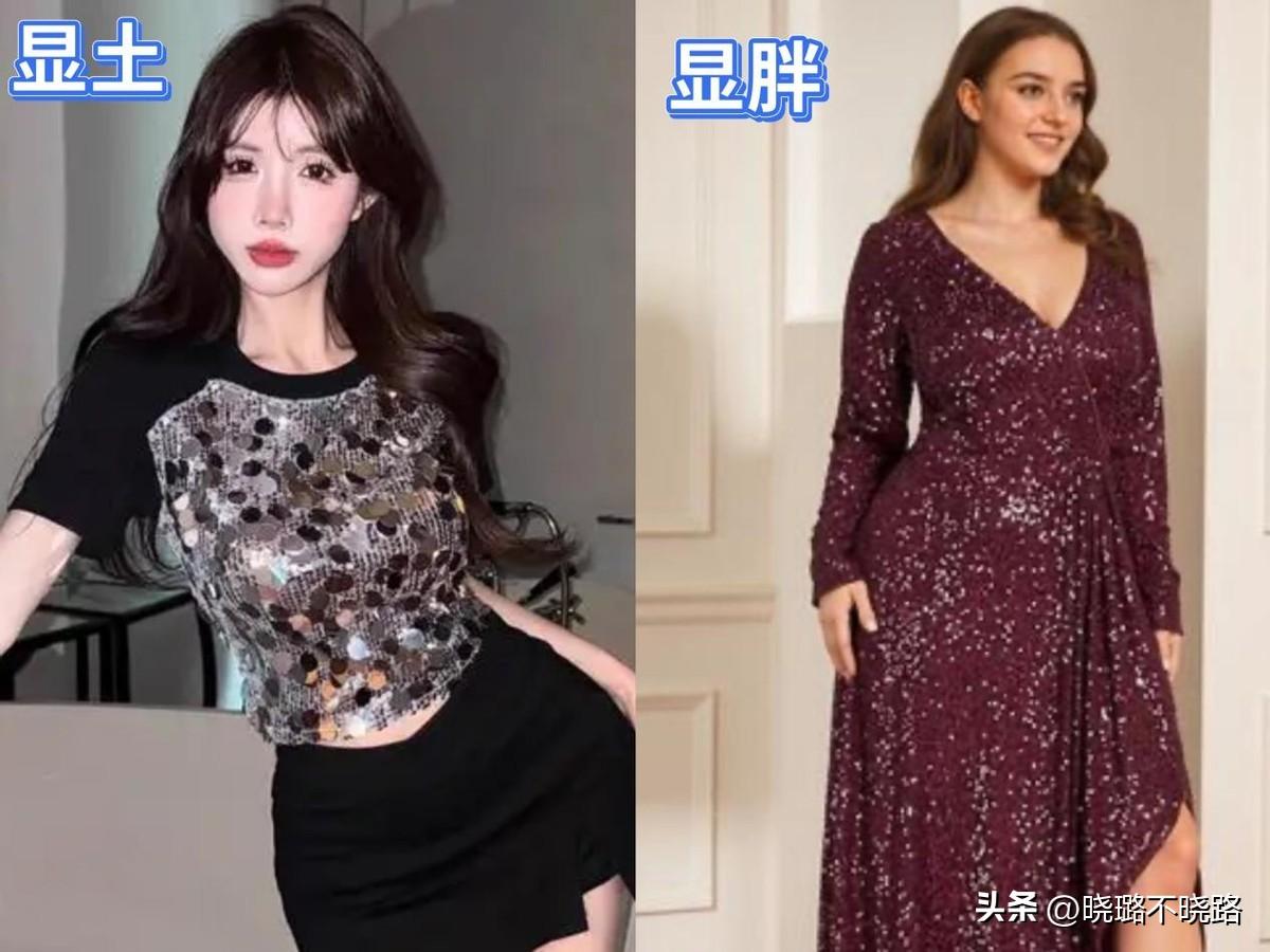 二是“超級顯胖”,亮片材質有膨脹感,滿身亮片會把上半身撐得更寬,肩寬、背厚的女性穿了,會顯得整個人“虎背熊腰”,比實際體重顯胖10斤,反而把成熟女性的利落感全遮住了。