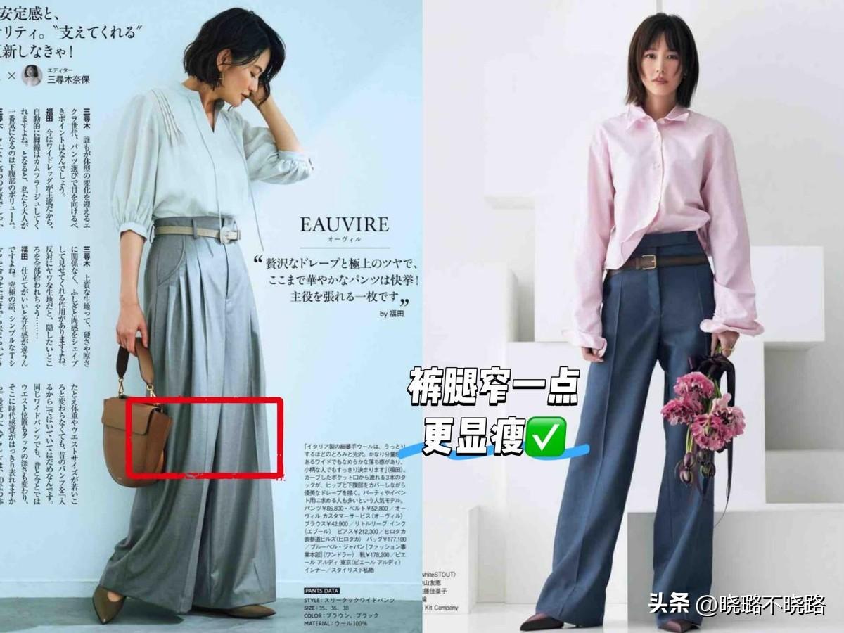 秋季必備的“萬能單品”是垂感微闊腿長褲——面料選垂感強的,版型是“高腰+微闊腿”,褲長到腳踝處,剛好露出一小節鞋子。這類褲子的優點是:一是顯腿長,高腰設計提高腰線,微闊腿的版型能遮住腿粗、腿型不直的缺點;二是適配場景廣,百搭。顏色優先選黑色、卡其色、灰色,基礎色更百搭,還能和衣櫃裏的上衣輕鬆搭配,完全不用費心想搭配,記住不要選擇褲腿過於寬大的