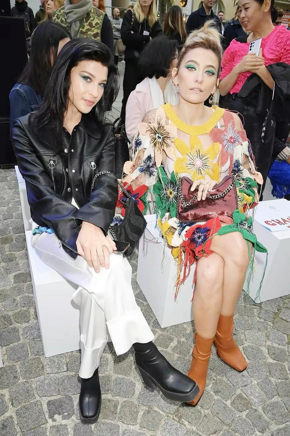 她曾穿着黑色短款皮衣搭配印花 T 恤,下裝搭配高腰白色闊腿褲,腳踩馬丁靴亮相時裝週,硬朗的皮質與飄逸的褲型形成強烈對比,既有朋克風的叛逆,又不失美式穿搭的隨性。