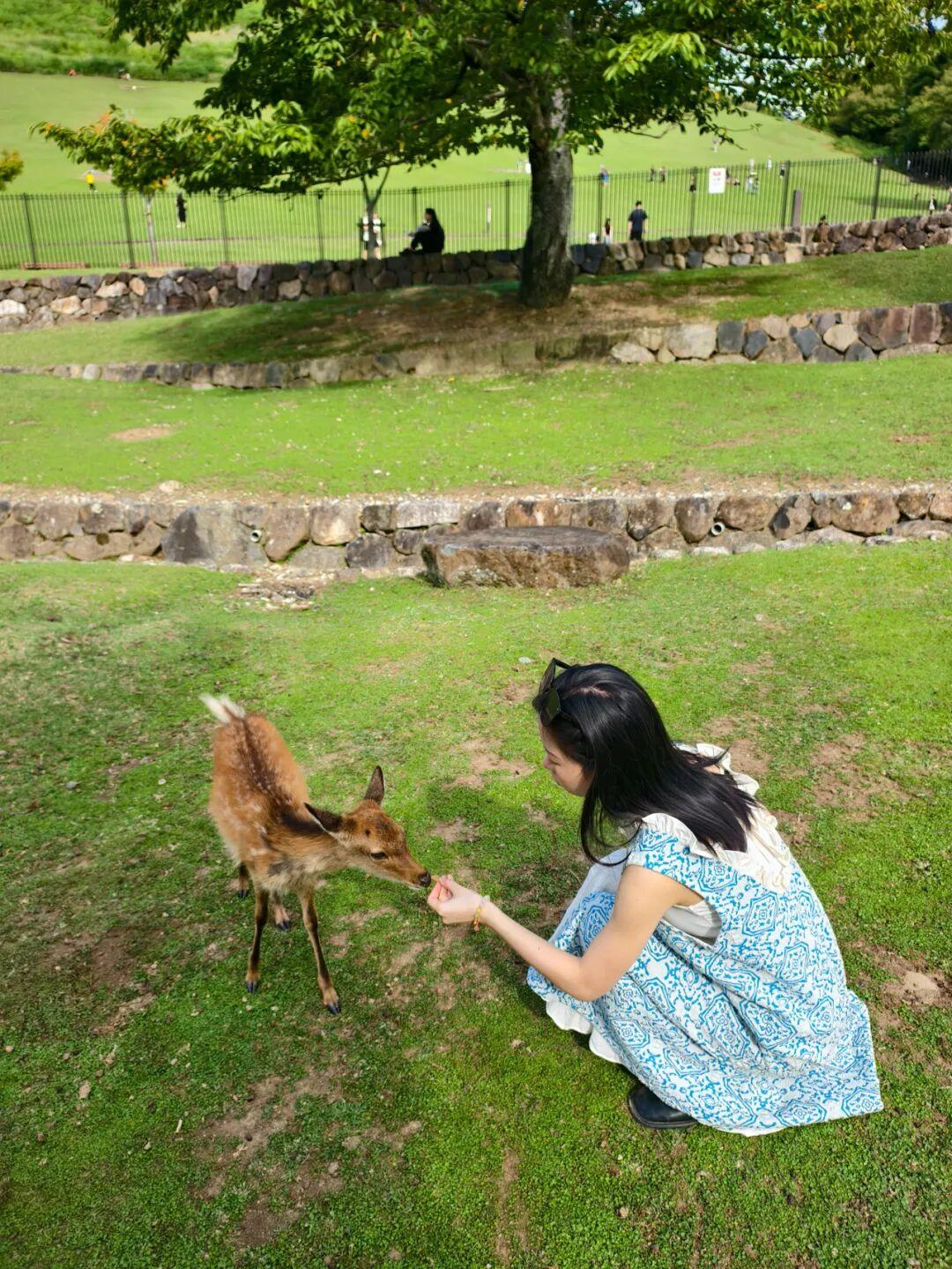 伊採:去了日本旅遊,在奈良公園裏喂鹿,挺治癒的!▼