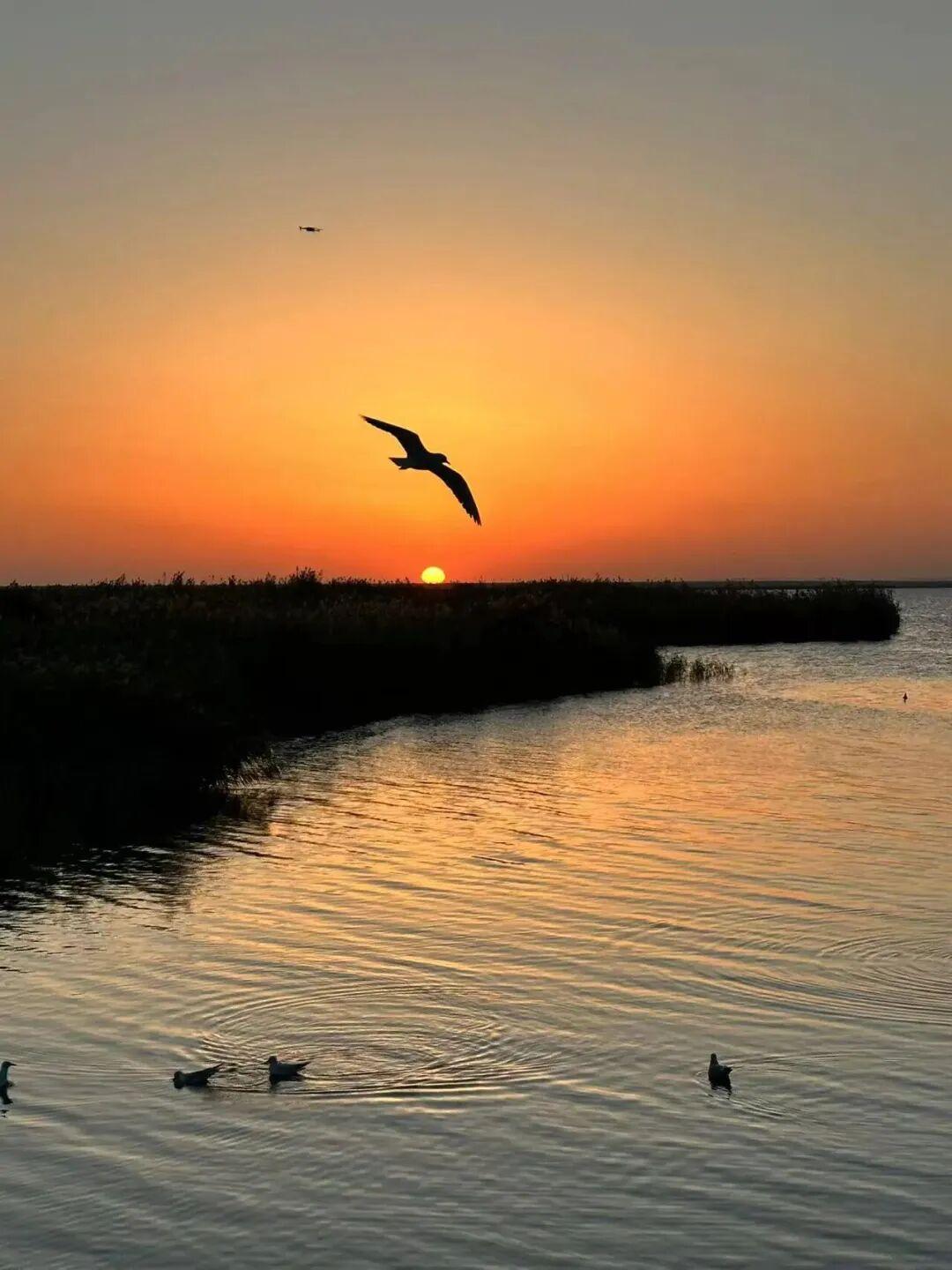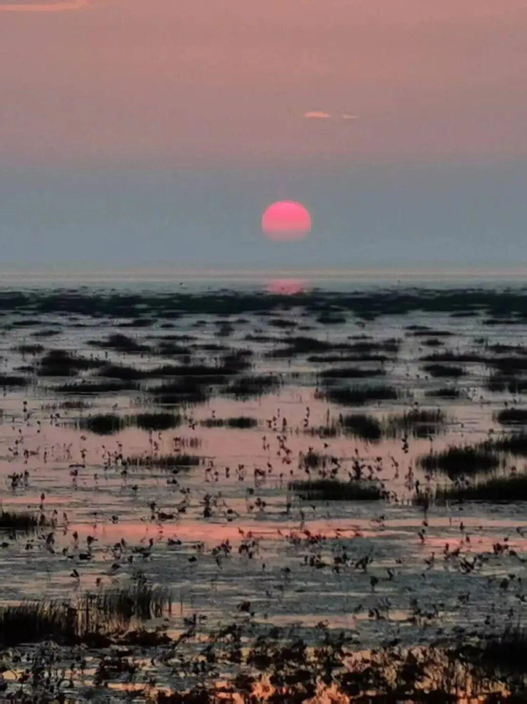 Wxh:額濟納旗居延海的日出和海鷗,簡直絕了。▼