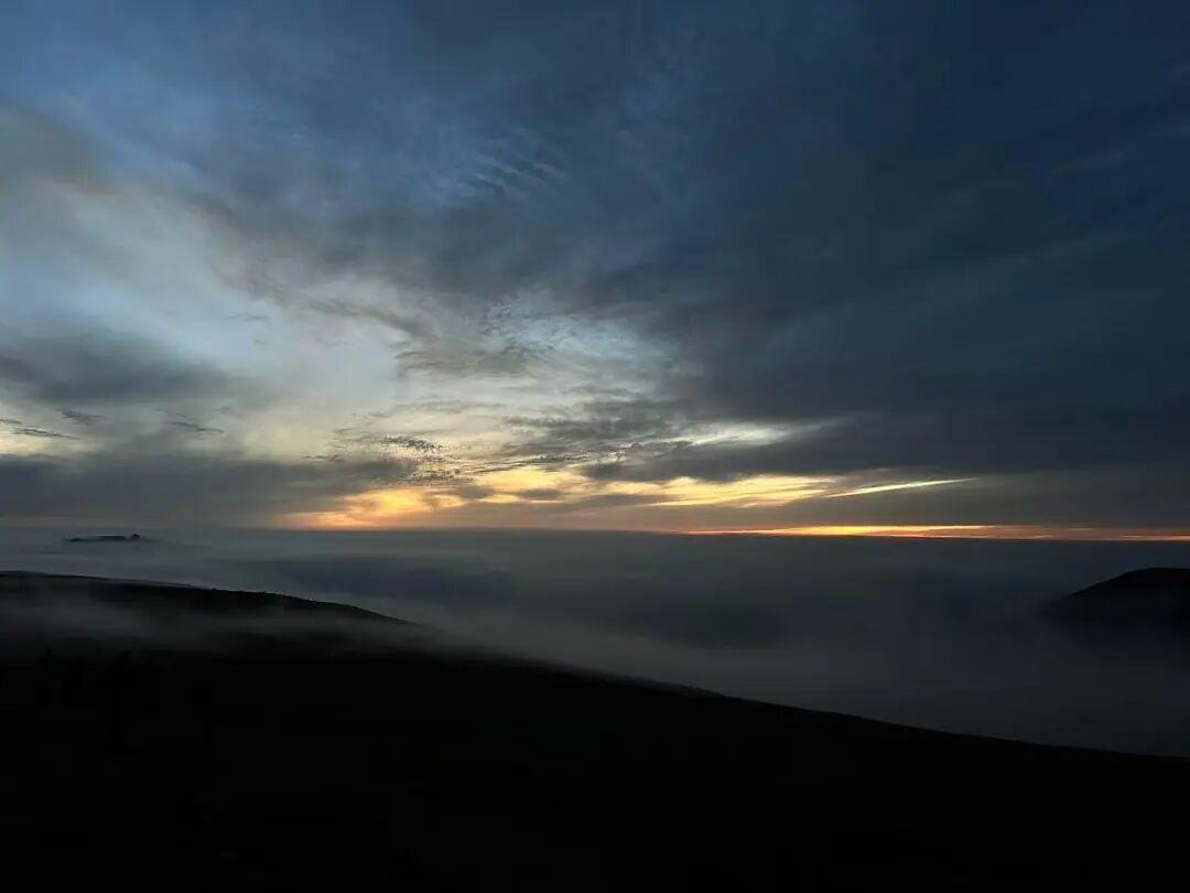 秋玲惜:一路上一個人是那種滿懷期待又風塵僕僕的感覺。10月2號早上三點鐘開始走,背上60斤的徒步包開始了我的五臺山徒步大朝臺之旅…… 目前在五臺山中臺的帳篷打字,第一天22km到的護銀溝,第二天25km左右摸黑到了中臺演教寺。日落也是登高看見的,“天在將黑未黑時最美”誠不欺我。▼