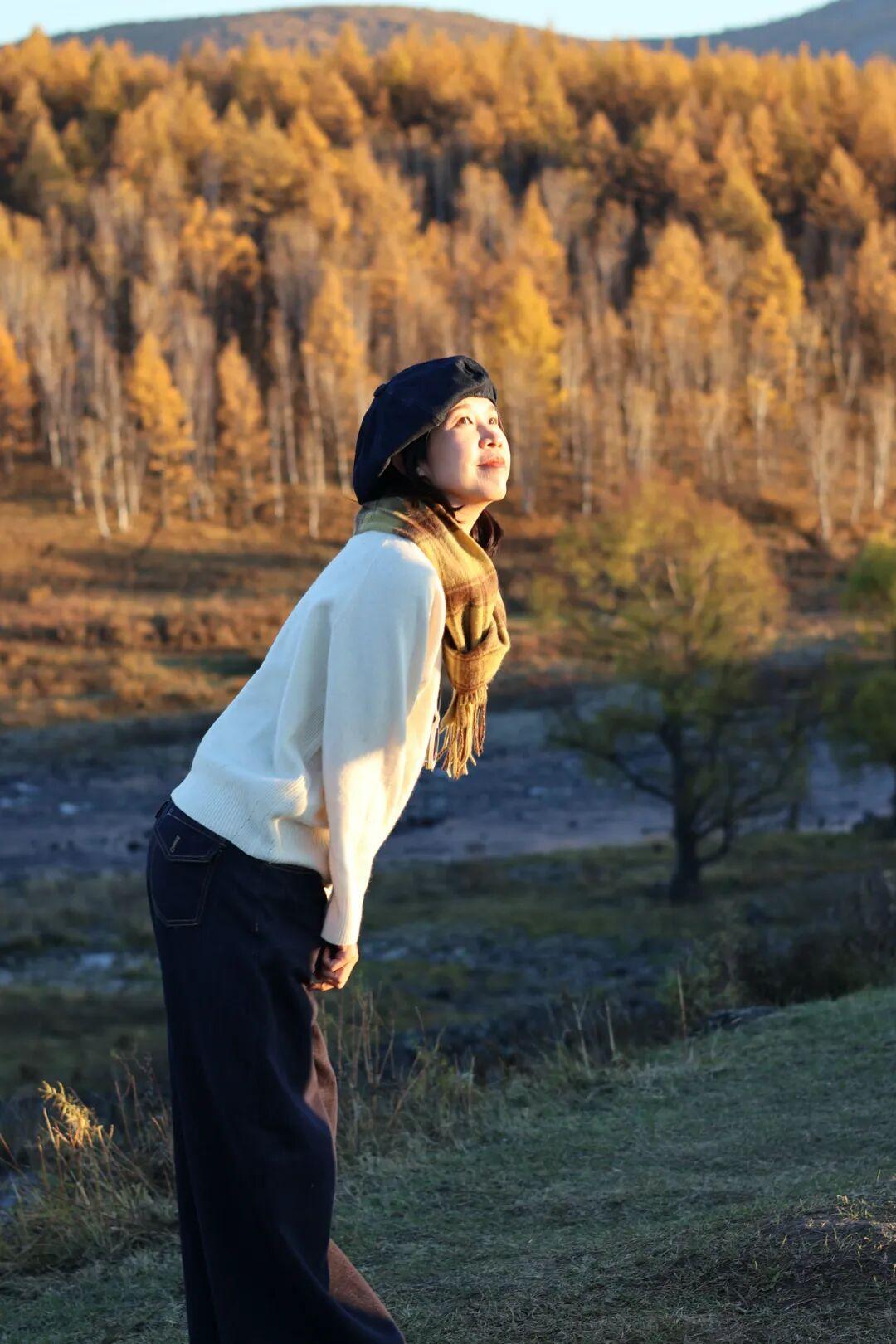 賞秋穿搭的一個思路:穿大地色系,和自然風光的美融在一起。 如果不想挑戰大面積棕色,用包包或者圍巾等配飾也能有氛圍——