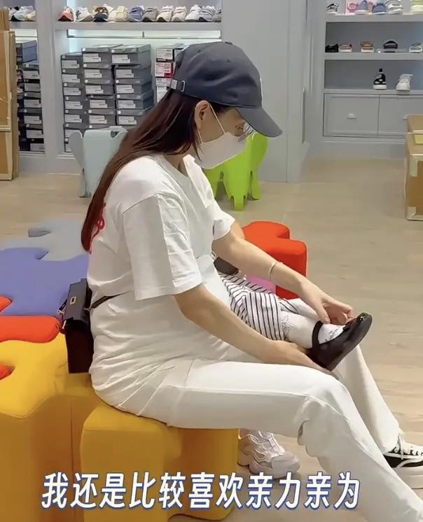 孕晚期的方媛,不僅準備了新生兒用品,還會親力親爲的照顧兩個女兒。她帶着倆女兒逛街,親自給倆女兒穿鞋,一點都不矯情。