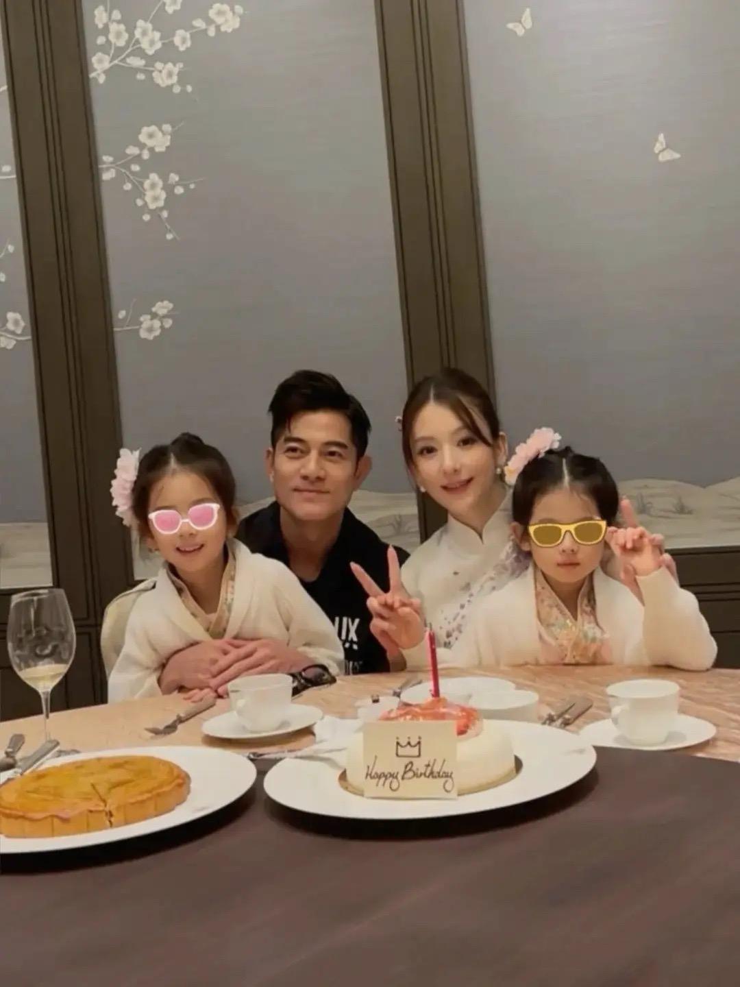一家四口的中秋節,也過得特別溫馨快樂。疑似方媛還提前給郭富城慶生了,餐桌上擺了一個小小的蛋糕,一人抱着一個女兒、畫面特別溫馨。