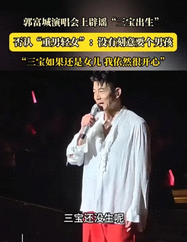 郭富城沒辦法,只能在演唱會上當衆闢謠。方媛三胎還沒生、目前已進入待產期,且對三胎性別沒要求。