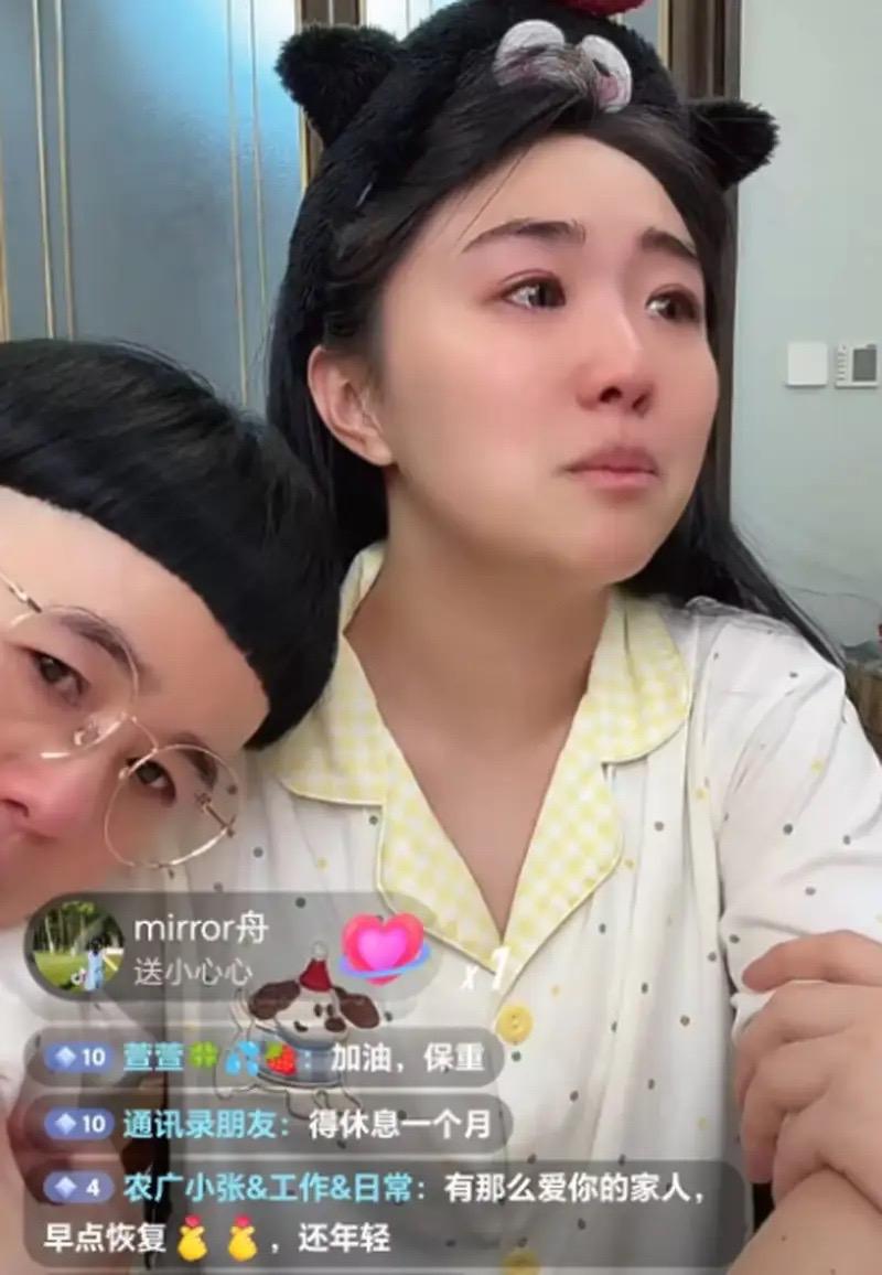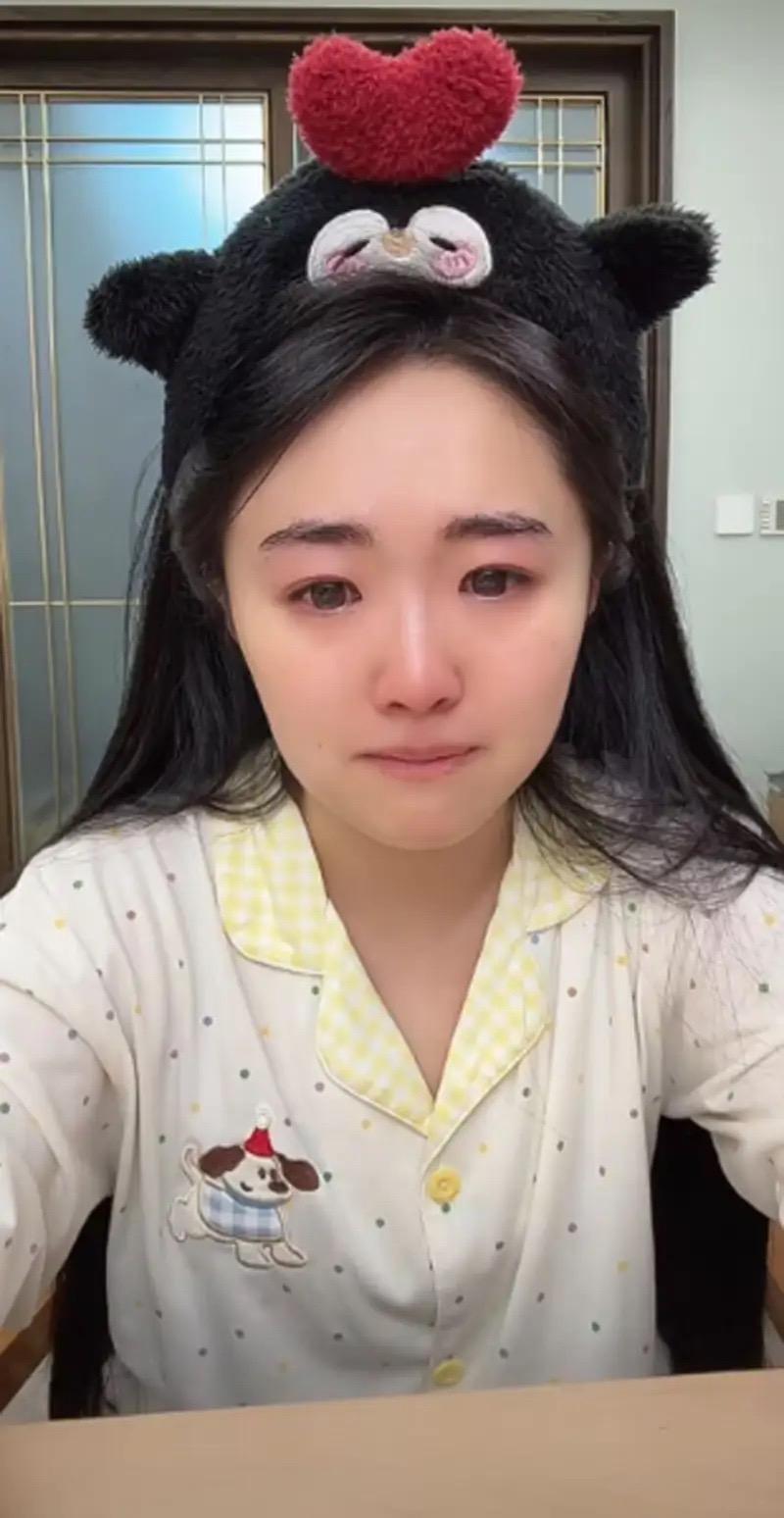 娃娃穿着睡衣,戴着髮箍,坐在了屏幕前。她雙眼通紅、連鼻尖都紅了,沒有化妝、看着就像剛哭過一樣,太讓人心疼了。