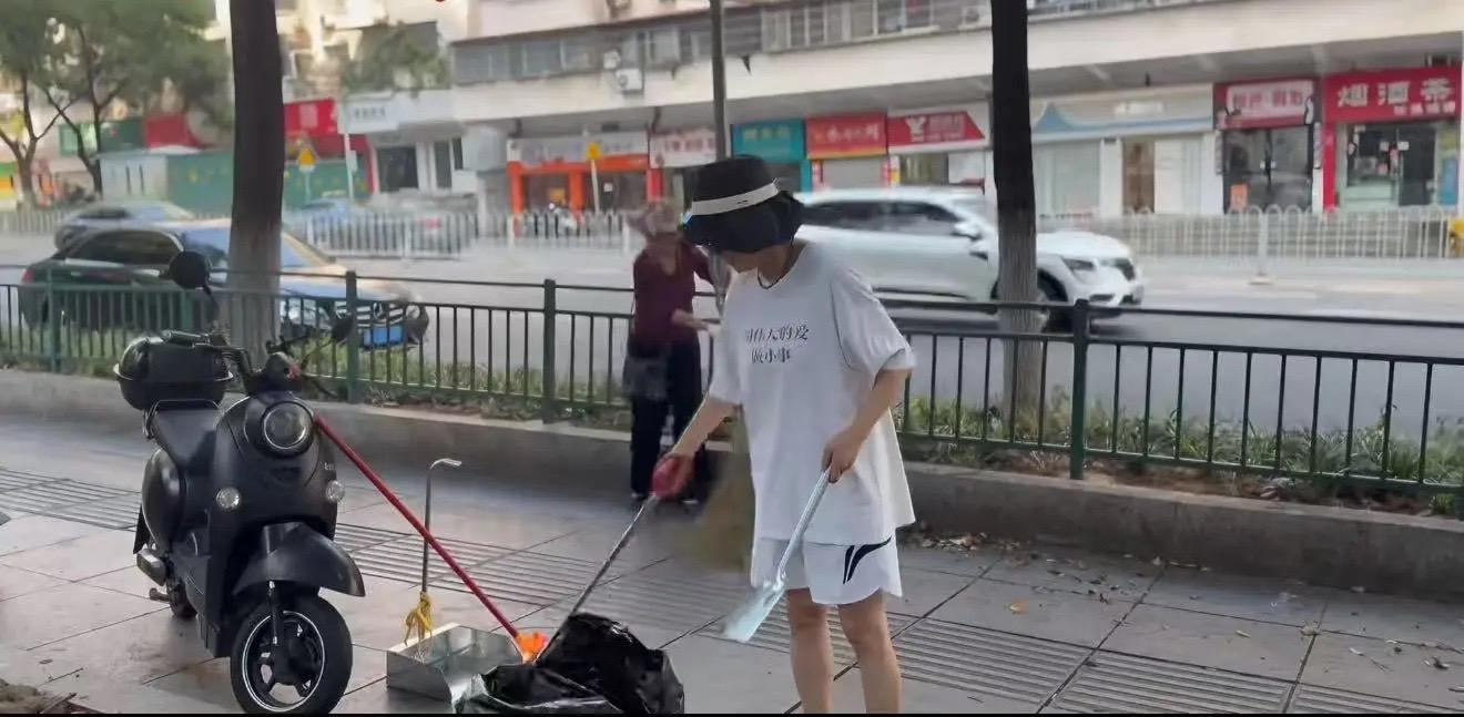 經過他們打掃的街道,變得乾淨整潔了許多。袁立的團隊沒有太多人,大概是三四個人的模樣,他們一起清理了街道、撿了狗屎,袁立累的都快要低血糖了。