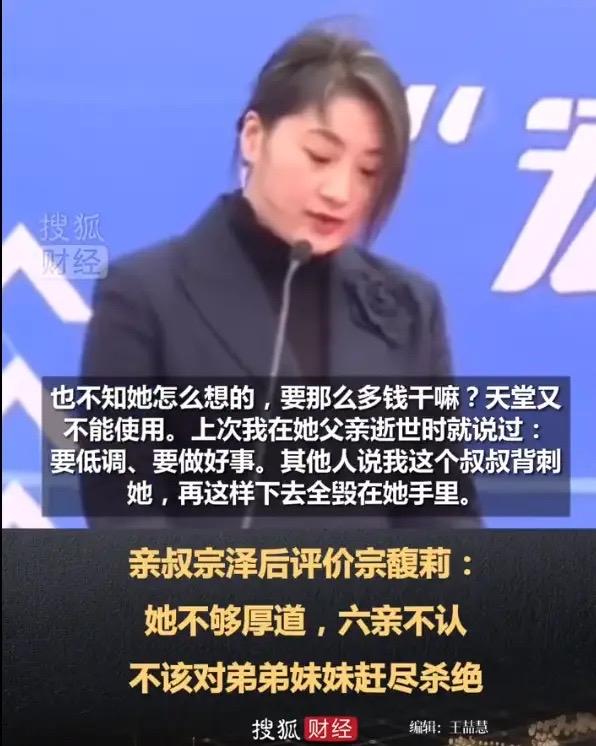還有就是親叔處處卡喉嚨,自從爆出“三弟妹”的事情,親叔就跳出來指責宗馥莉,說她太狠、不給別人留活力。