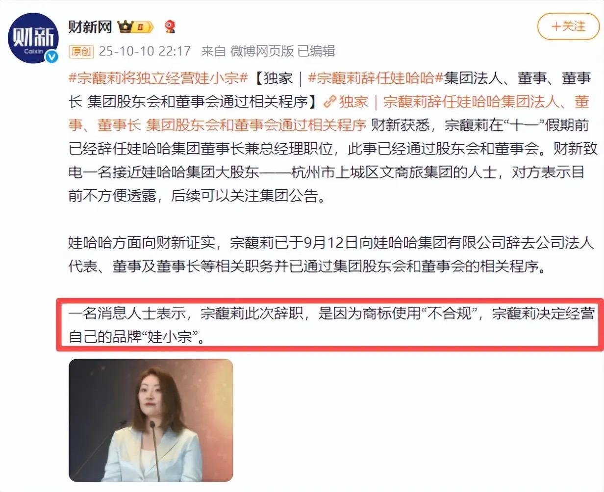 如何破局,對宗馥莉來說太難了。現在的她決定辭職,獨立經營娃小宗,就是不知道沒了娃哈哈商標的依靠,娃小宗會不會被認可。