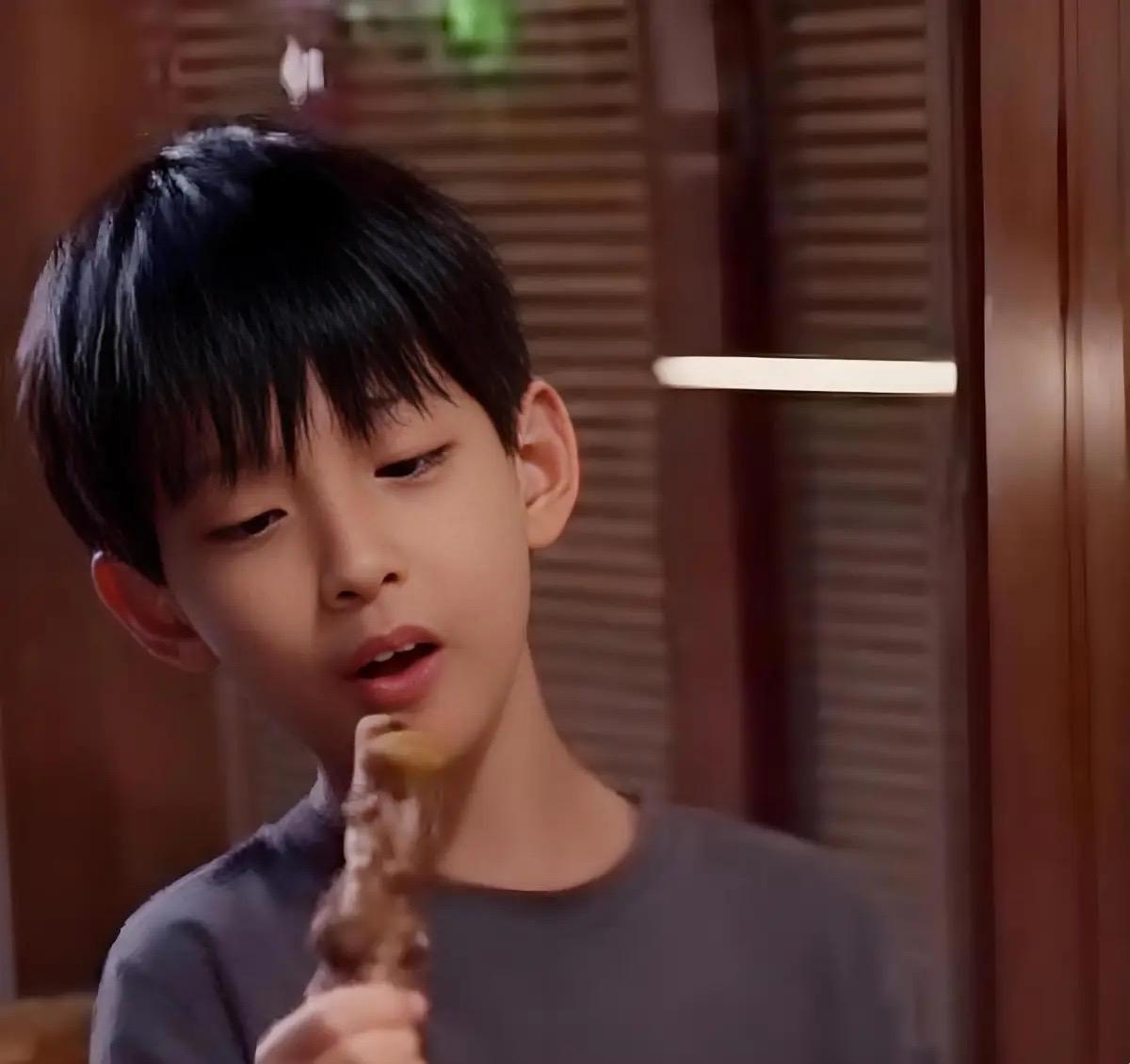 汪希箖才9歲,長得清秀帥氣、也是遺傳了大S和汪小菲的優良基因。他穿着一件灰色圓領T恤,正在專心的啃雞腿,完全沒有注意到鏡頭的拍攝。