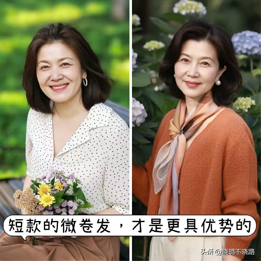 如果比較喜歡捲髮狀態的話,那麼其實推薦屏幕前的各位女性到了中年階段,我們就可以運用一些短款的微卷發,並且是屬於很微弱的那種弧度展現,要比傳統的燙髮更加的極具穩定以及優雅和溫柔感的襯托效應。這一款髮型的話大家就可以看看女藝人陳數在當下這個年齡階段當中,就是運用的這一款髮型,非常值得優選。