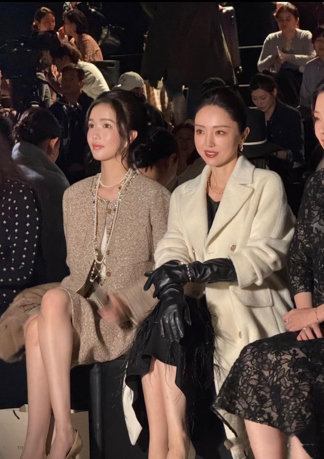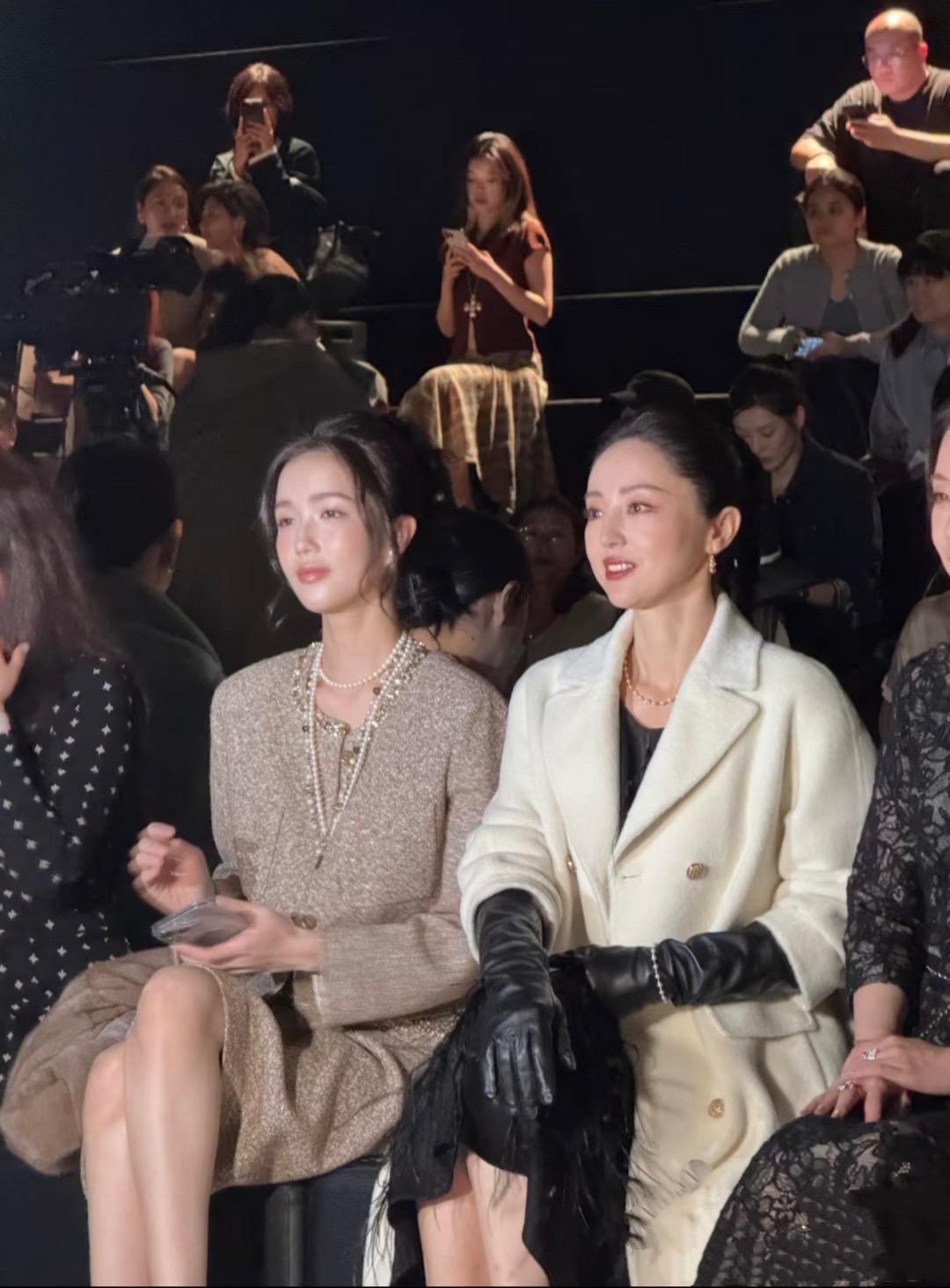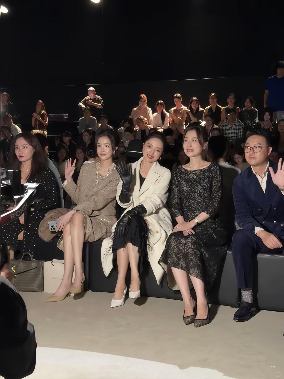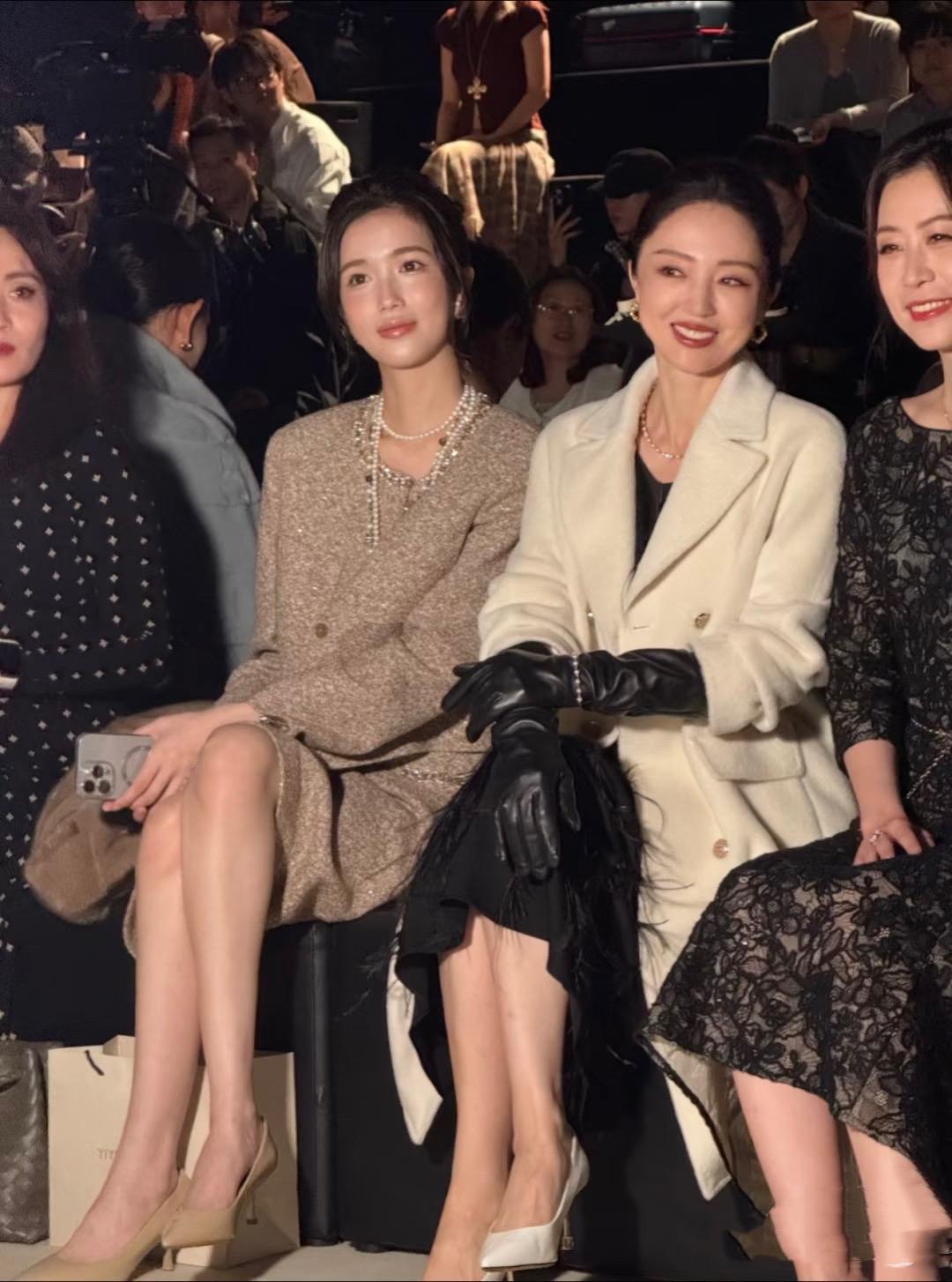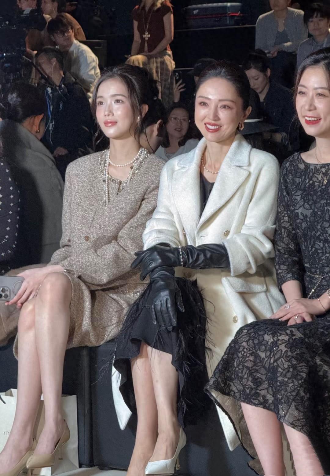 董璇坐在臺下看秀,儀態很好、臉上帶着笑。不愧是女明星,即便到了奔五的年紀、也能保持該有的優雅和體面。