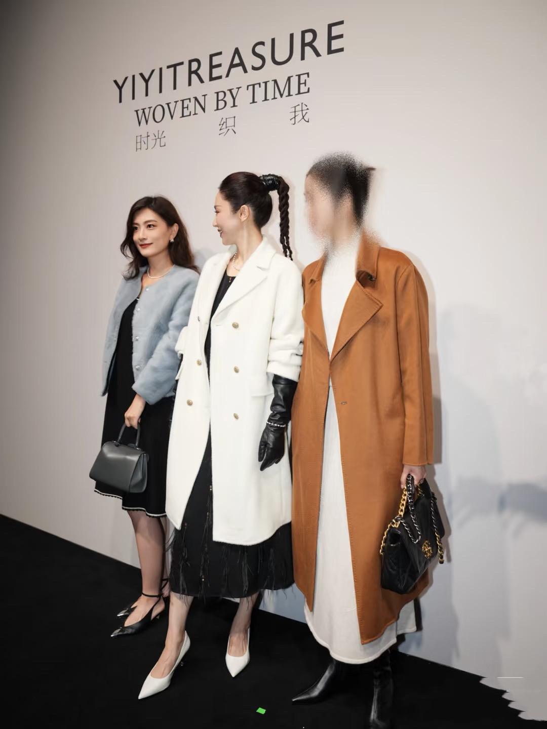 董璇身邊的兩位女士,以爲穿着黑色蕾絲連衣裙,優雅中帶一點性感。另一位穿淺駝色的小香風套裙,精緻中帶一點貴氣。