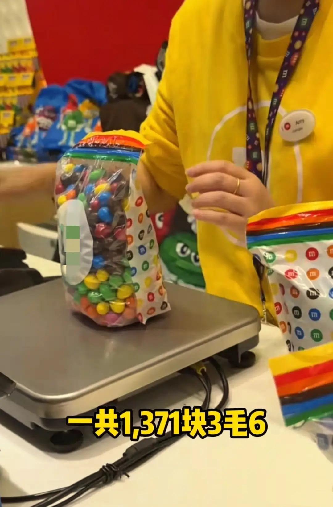 裝滿三袋巧克力豆,張磊就去結賬了。可當他聽說價格的時候、頓時就傻眼了。這三袋巧克力豆一共1371.36,真是讓人驚呆了,原來M豆這麼貴呢。