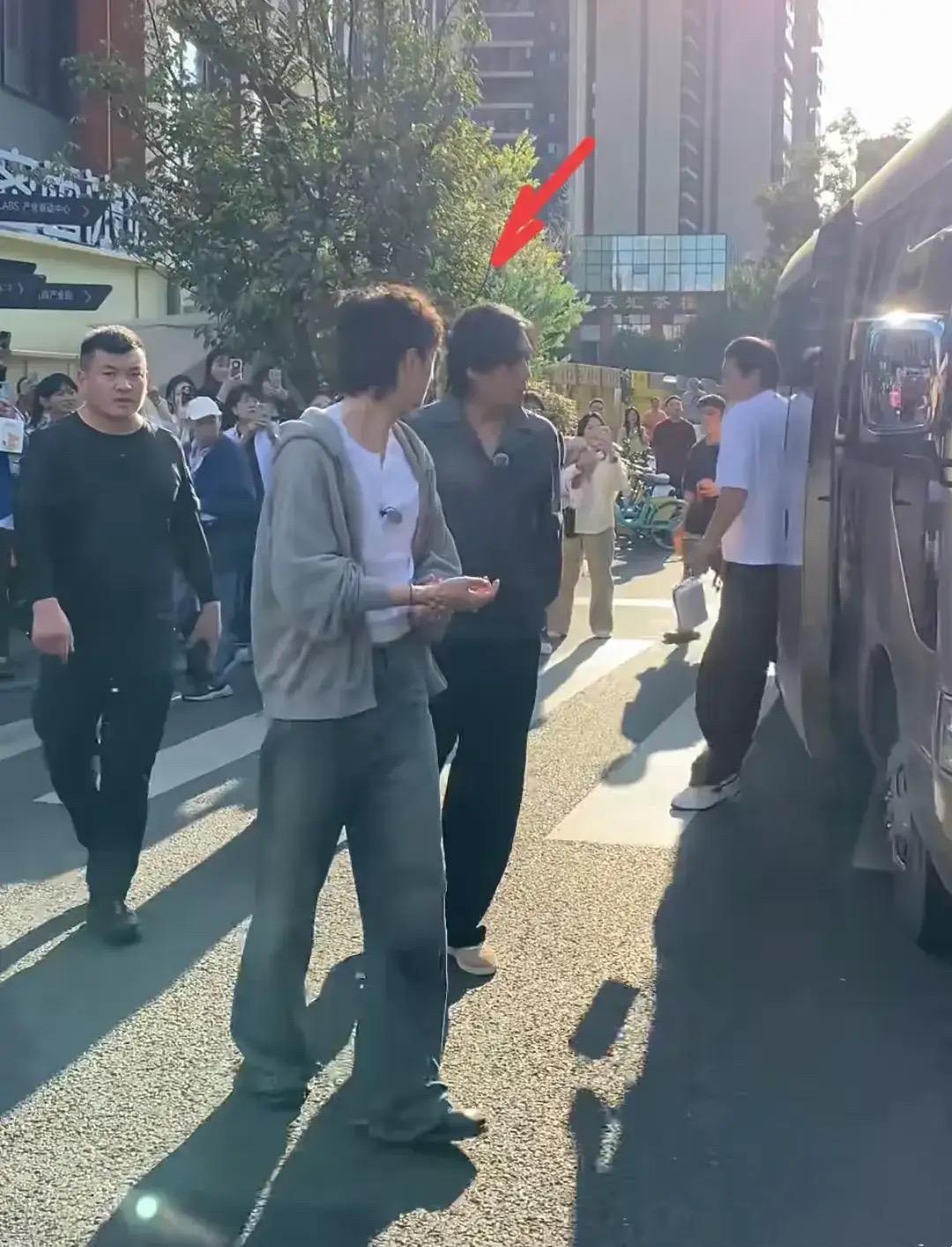 秦昊穿了一身深灰色服裝,頭髮也有些長了,感覺有點邋里邋遢的。人到中年、形象真的是越來越油膩了。
