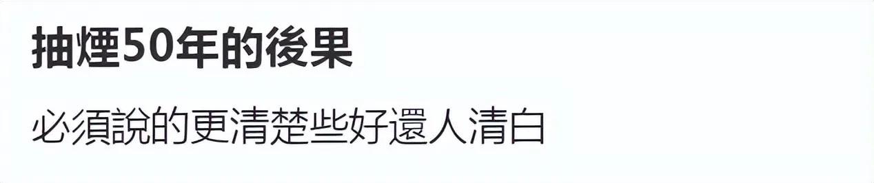 他公開自己的掛號單,寫的是“癌症中心胸腔內科”,並且說明了自己抽菸50年的後果。配文字:必須說的更清楚些好還人清白。公開自己的患癌,只是爲了還向太清白。