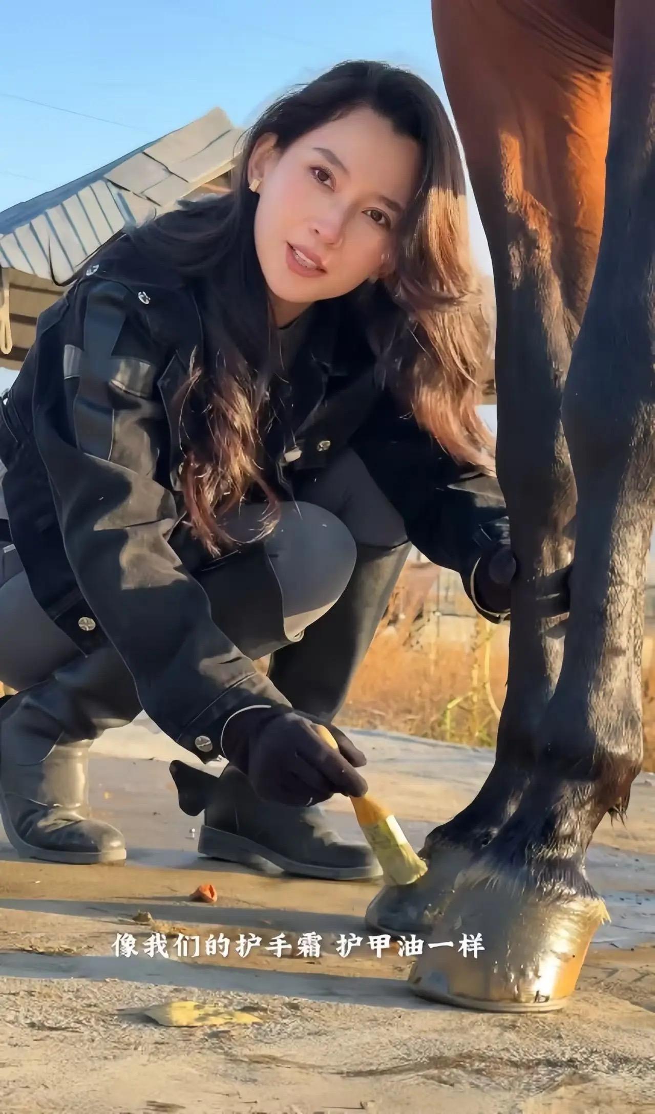 修剪好馬蹄以後,森林北還會給馬蹄做一個護理,養馬養個太驚喜了。她說就像我們塗護手霜一樣的,馬蹄也是需要護理的。
