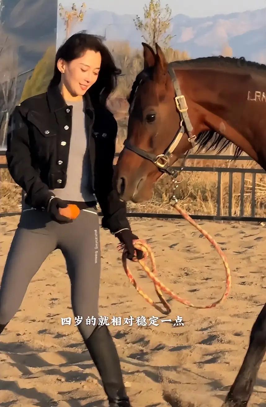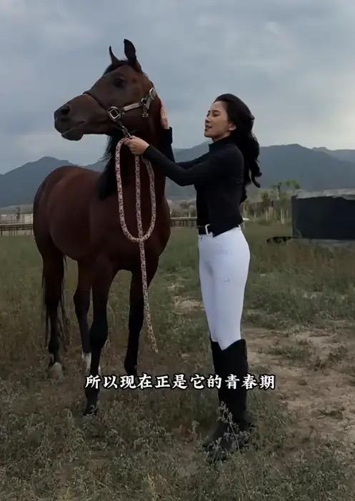 她在新疆養了一匹馬,還在網友的幫助下給它取了一個名字叫黑眼圈。大概是這匹馬的眼圈總是黑黑的,網友就提議給它叫黑眼圈了。