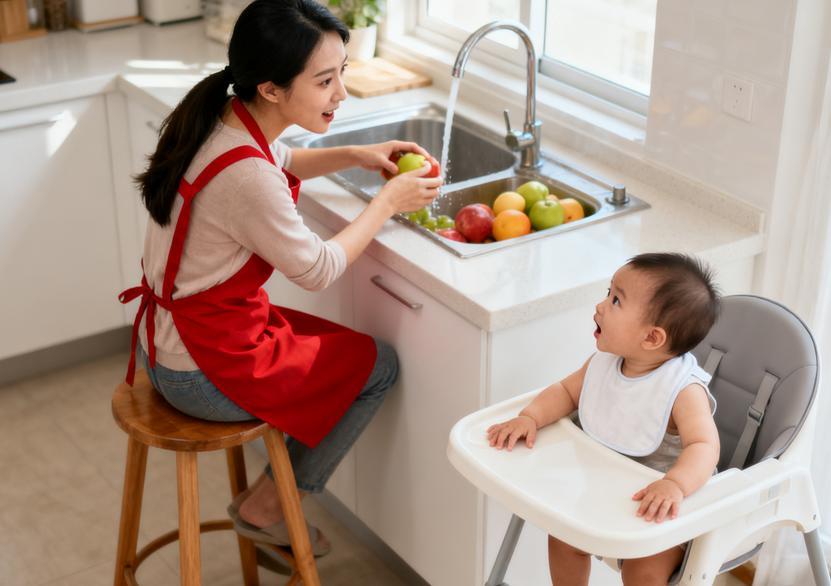 但不能隨便說,需要做到發音清晰、句子簡短、語氣誇張,同時用手作輔助,通過這種簡單清晰的表達,幫助孩子進行語言學習。
