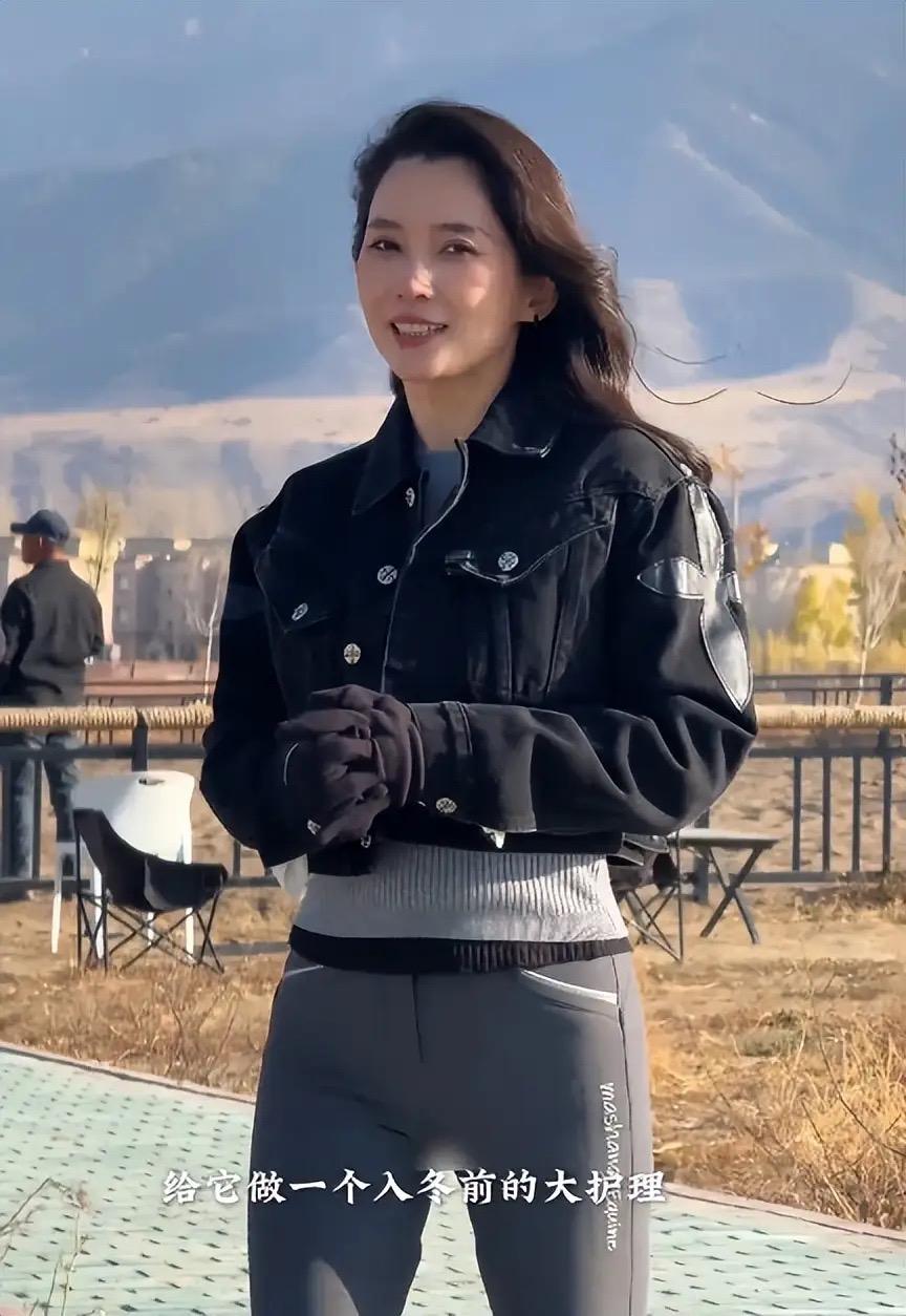 在森林北養馬的視頻裏,她總是穿着緊身褲。不管是白色緊身褲、還是灰色瑜伽褲,都會勒出三角區,顯得蠻尷尬的。
