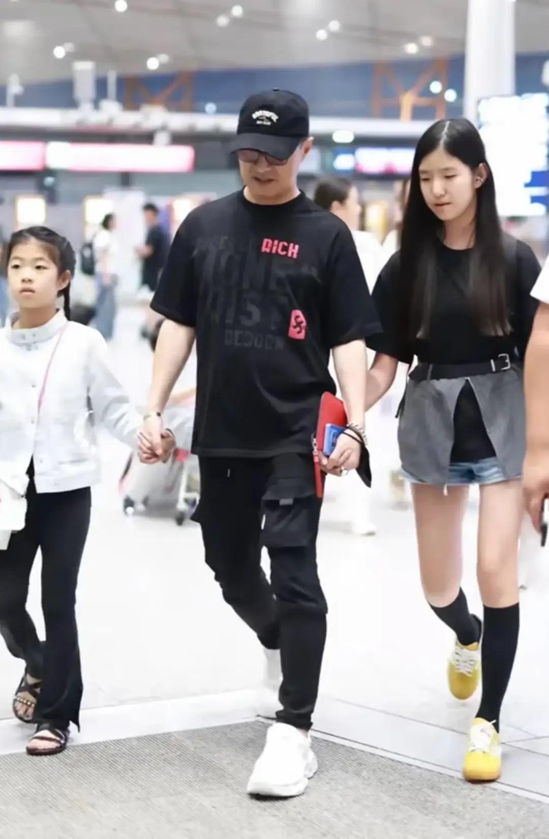 汪峯一個人帶着三個娃,也是分身乏術。即便是走機場,也得左手一個女兒、右手一個女兒,不能厚此薄彼。