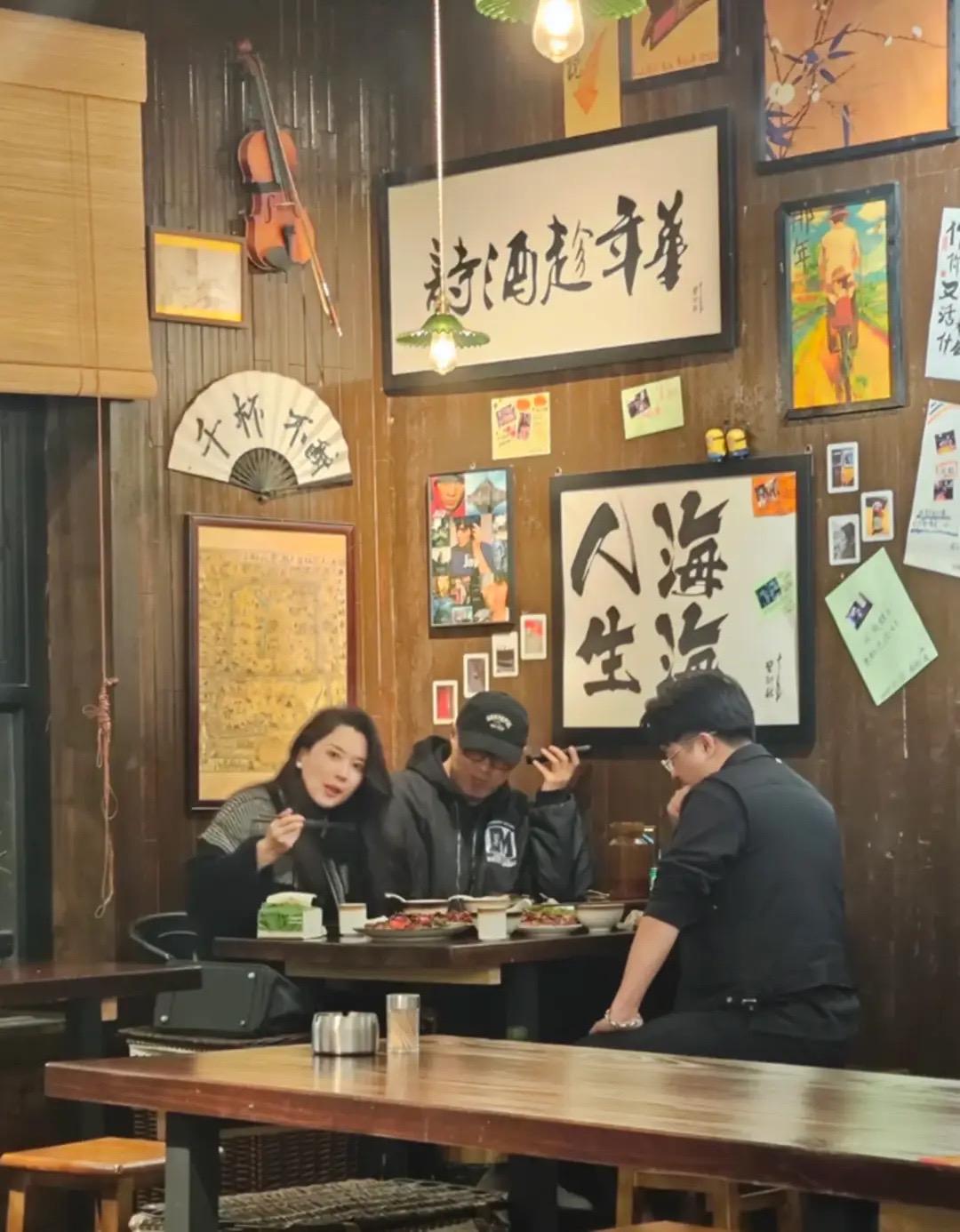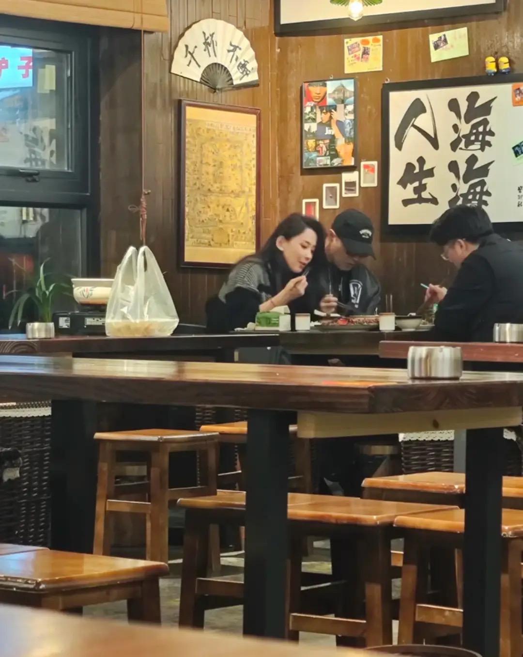 他們在一家比較普通的餐館喫飯,當時餐館裏沒什麼食客,網友拍照的時候還被森林北瞪了一眼,不過很快森林北的目光就柔和下來了。