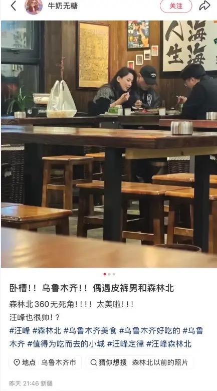 可讓人沒想到的還在後面呢,汪峯和森林北難捨難分,最後的結果竟然是直接沒分開。10月17日,網友就偶遇汪峯飛新疆陪森林北喫飯了。