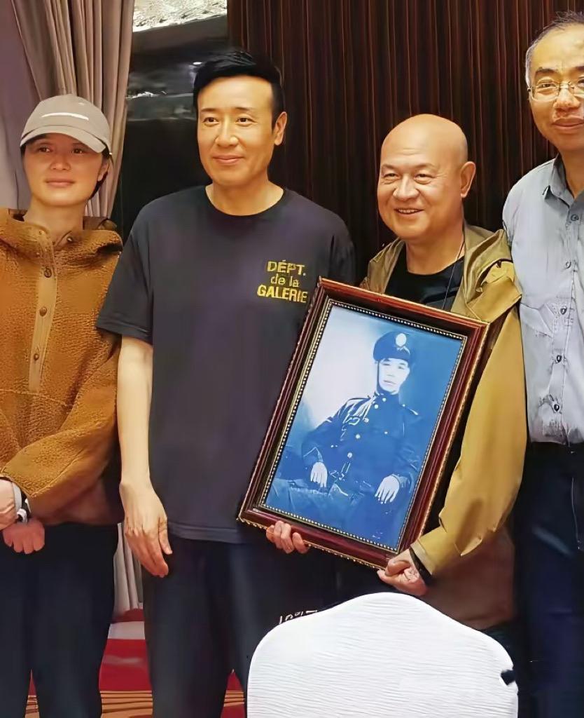 爲了演好朱楓這個角色,她和於和偉一起拜訪了吳石將軍的後人。下圖手持吳將軍像的就是吳石將軍後人,他是光頭、吳石將軍也是光頭。