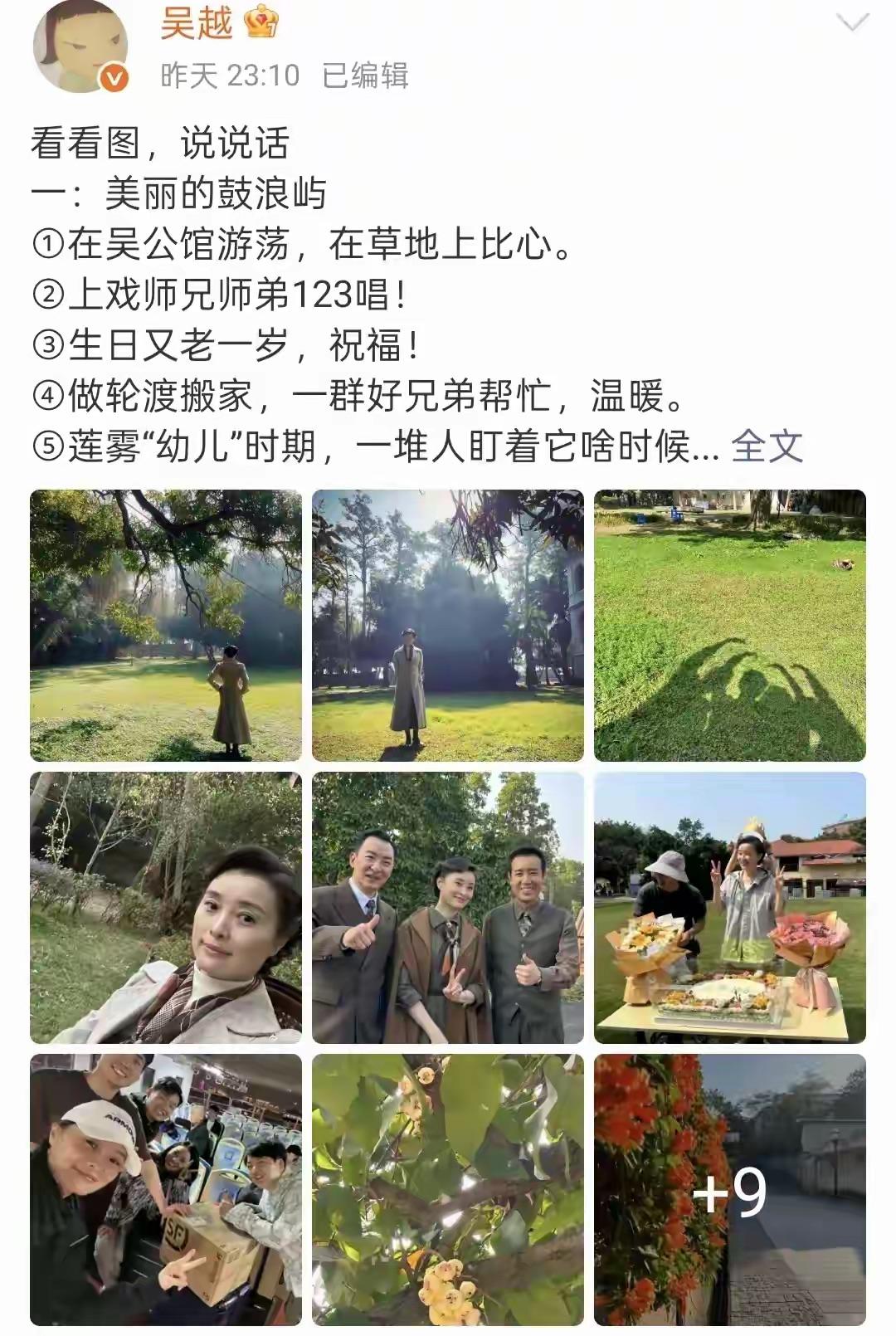除了於和偉和郝平,徐崢也出現在了吳越的照片裏。徐崢戴上了假髮,看着臉型還是很胖乎,吳越在一側伸出腦袋,可可愛愛的。
