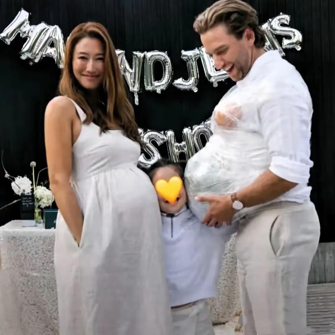 謝婷婷很期待這個小生命的降臨,在兒子還沒出生的時候、她就特意辦了一個“迎嬰派對”。男友也做了一個大肚子,非常的搞笑。倆人把女兒擠在中間,關係非常親近。