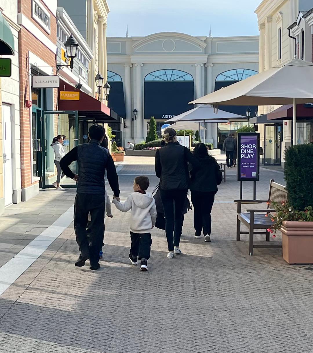 撒貝寧一家上街,他都穿上了羽絨馬甲,還有一種瑟瑟發抖的感覺。他一隻手插進口袋裏,另一隻手牽着兒子,感覺身體都在說好冷。