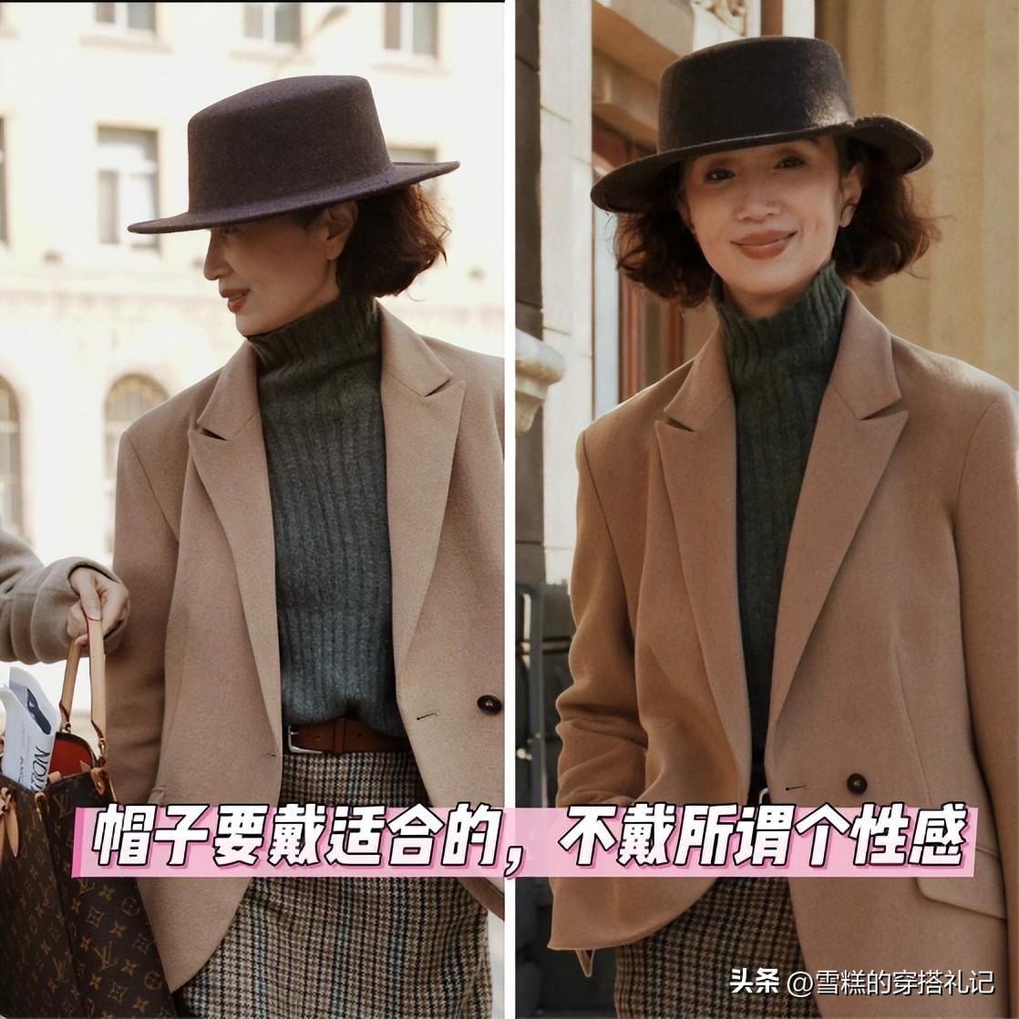 尤其是對於各位女性來說,如果是到了五六十歲這個年齡階段的話,那麼像帽子或者是圍巾絲巾這樣的配飾萬萬是不可或缺的,也建議屏幕的各位女性戴帽子的時候一定要切記三戴三不戴。