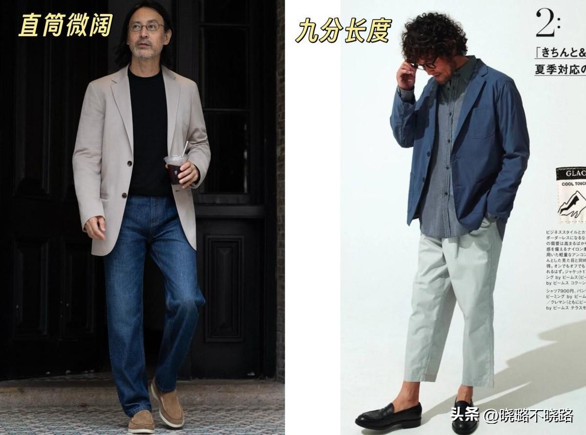 根據身材選擇版型:腿粗的男士可以選擇深色系的微寬鬆直筒褲,利用色彩的收縮效果修飾輪廓;腿短的男士則可以考慮高腰款式,配合恰到好處的褲長(到達鞋面1釐米處),創造更優的身材比例。