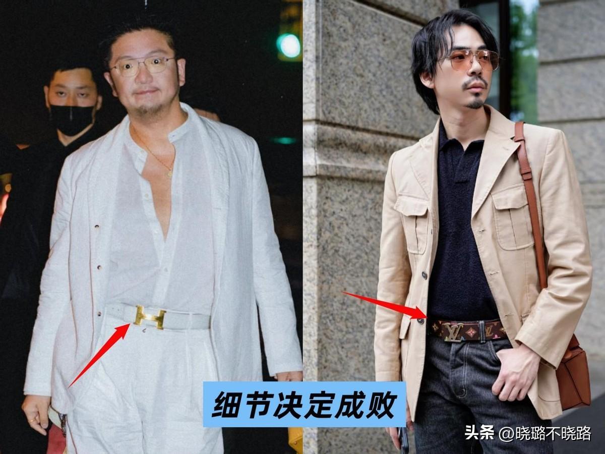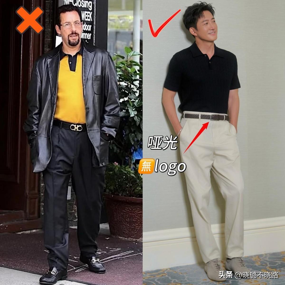 油膩穿搭3. 皮帶選不對:寬扣+亮面+勒太緊,秒變“暴發戶既視感”