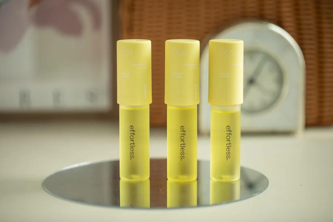 中度受損、經常染髮的同事,日常都是炸毛狀態,遠遠都能看出來她髮質不太好,堅持早晚都用effortless護髮精油,頭髮逐漸有健康的光澤感了!▼