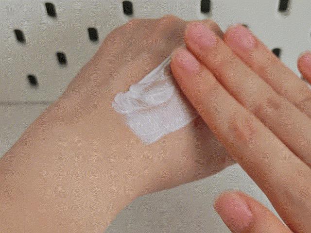 它是物理防曬,質地已經做到在同類中很好推開的,成膜很快!我感覺有時候手慢點,不立刻抹勻,十來秒防曬膜就已經能摸到了。▼