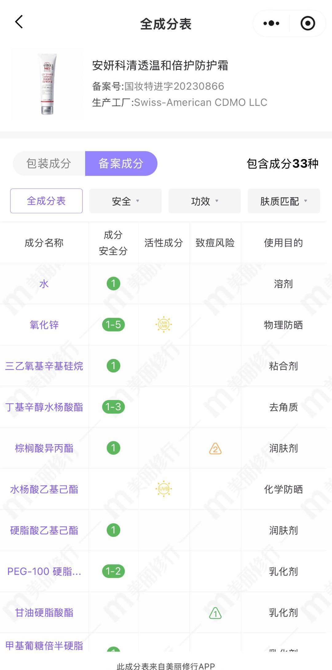 用到了以大小粒徑復配的寶寶防曬同款成分-19%透明氧化鋅(很溫和),大粒徑對付UVA,防曬黑曬老,小粒徑主要抵擋UVB,防曬紅曬傷。