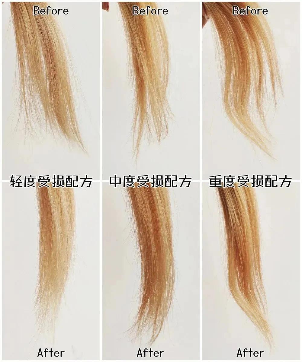 他 家的精油很特別,會針對不同受損髮質,分爲 輕度、中度、重度 三種配方。 我們測試過,同種髮質用三款不同配方的精油,效果明顯不一樣。