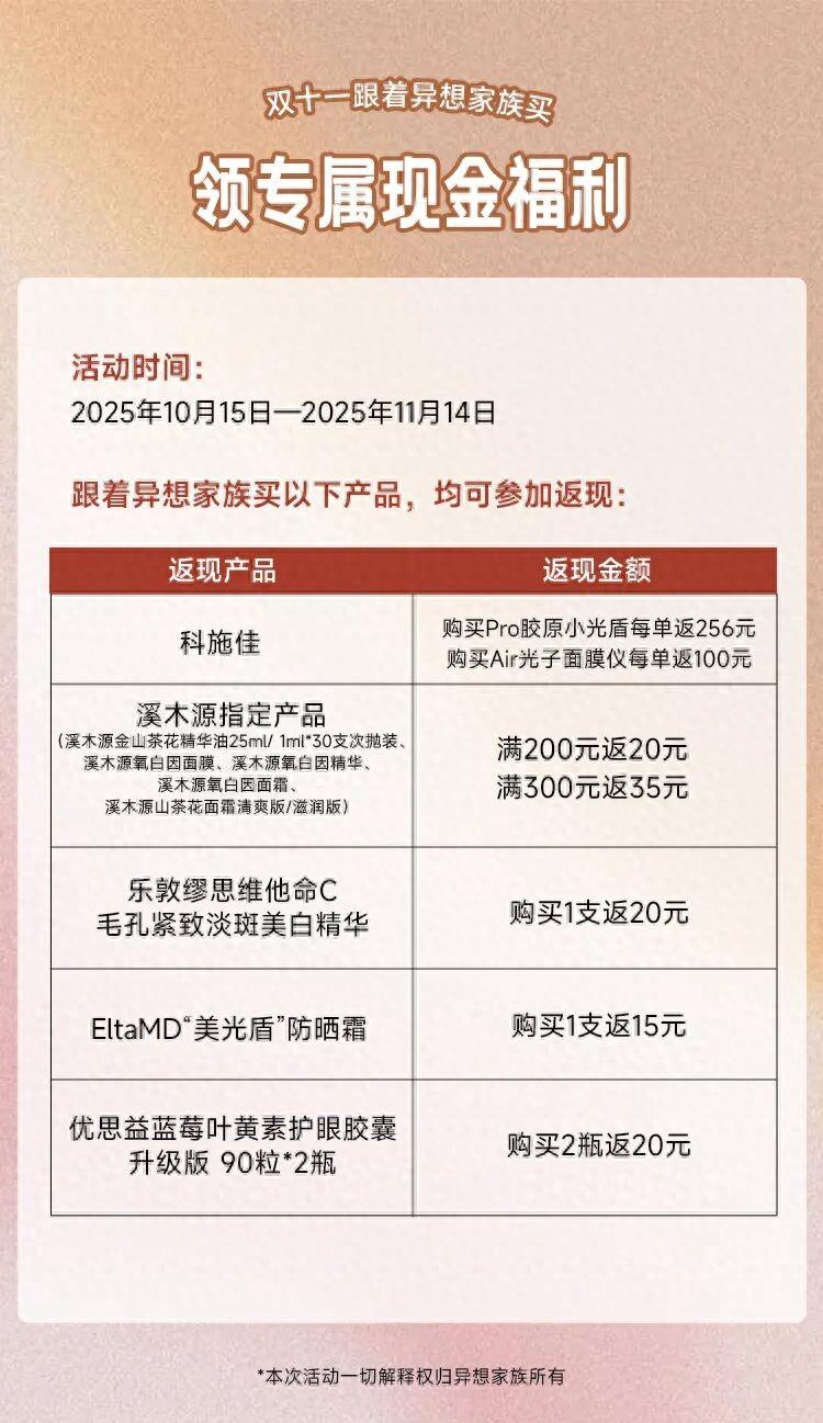 規 則如下:雙11期間(10月15日-11月14日),通過異想家族專屬鏈接下單購買指定產品 ▼