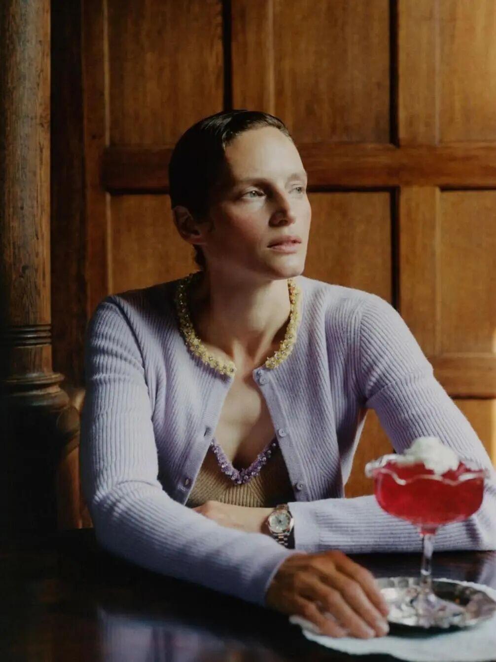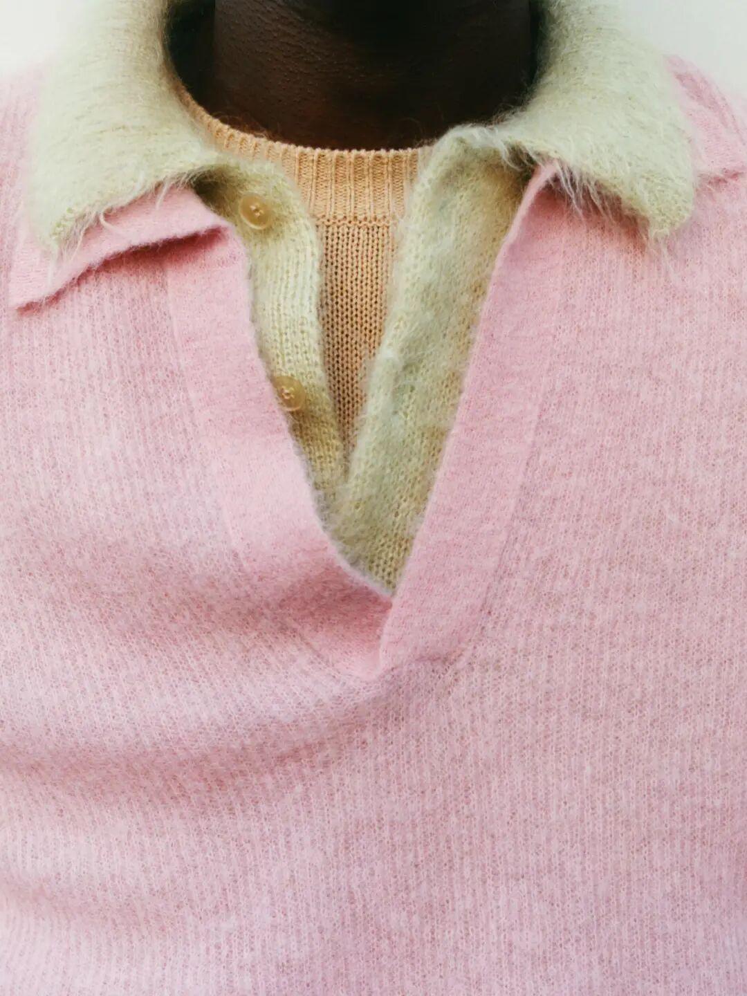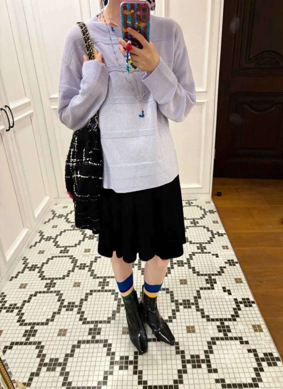 一件 低飽和度的淺彩色針織衫, 它就像一道溫柔的光,能瞬間點亮你衣櫥裏那些深色、中性色的外套。 ▼